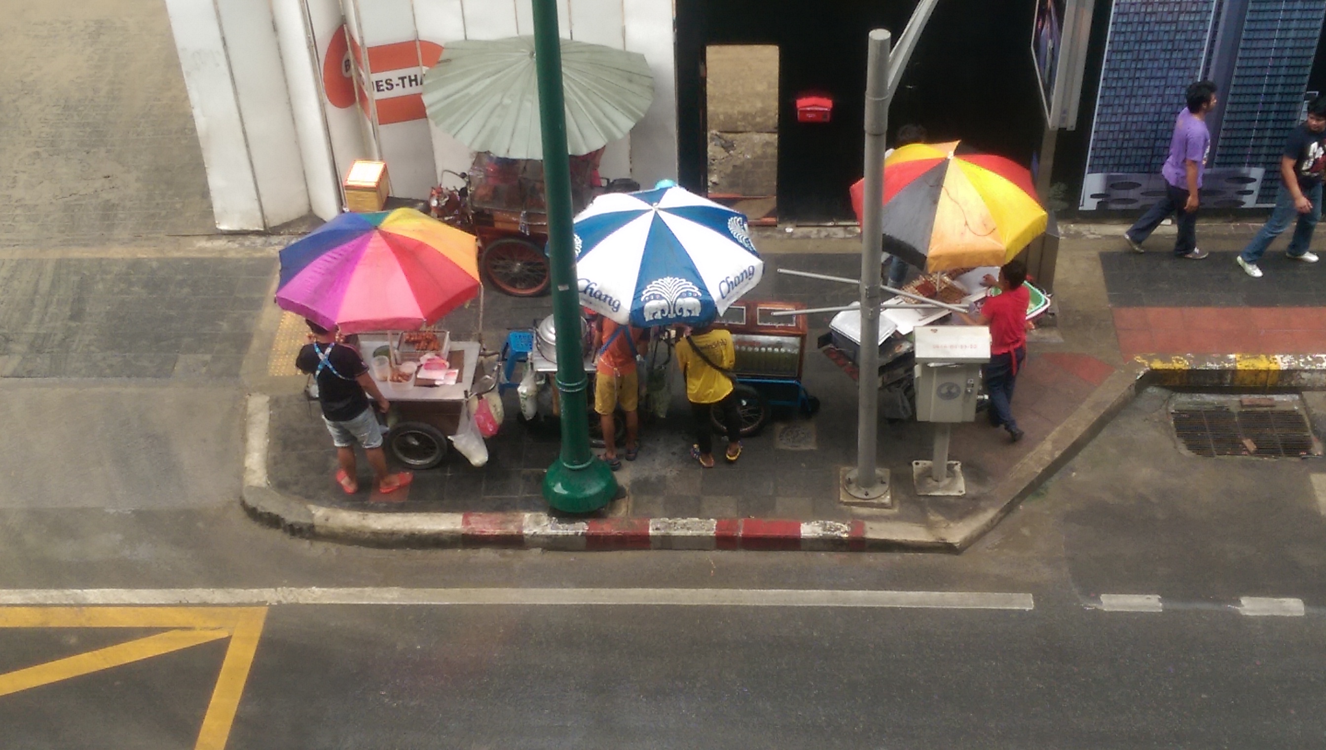 After one beer we went on the hunt for food, Liam found a chicken thigh cooked on hot coals in front of us and Leia went for some fresh watermelon. We skytrained it over to Siam and found a food court type place where we had tom yum, tofu, boiled chicken, fried pork and rice. The food was amazing and we had our first experience with live bugs crawling around the place. It didn’t actually bother us and as Leia remarked, we were eating bugs the night before so couldn’t really be grossed out.