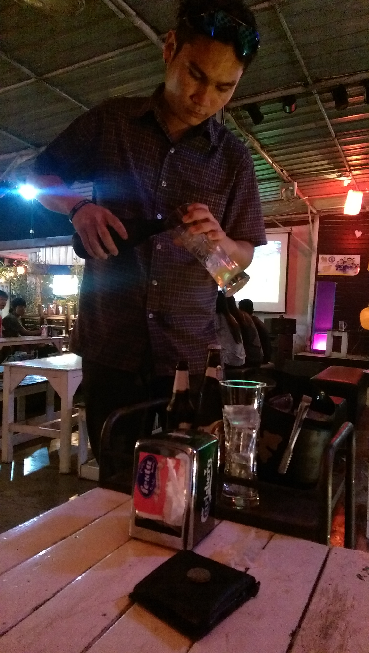The bar workers came to the table to fill up glasses with beer and ice but somehow always did Liam’s glass and never mine! Maybe they were hinting I didn’t need anymore. After a few beers we went back to the hotel, refusing to pay the tuk tuk driver more than 100b to get us there. Maybe we were finally getting good at this whole thing.