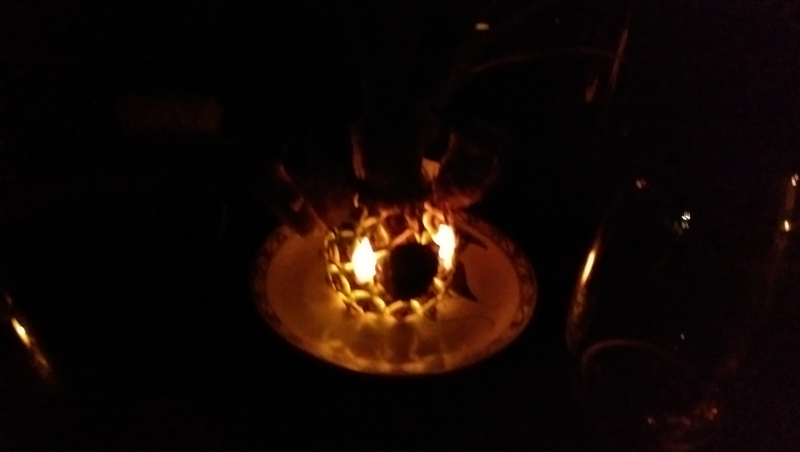 This involved a fish soup which was lovely, prawn salad type thing. More spring rolls served on toothpicks stuck in a glowing pineapple. Possibly a nod to Halloween, followed by oysters, prawn and squid skewers all served on a plate with a cucumber boat!