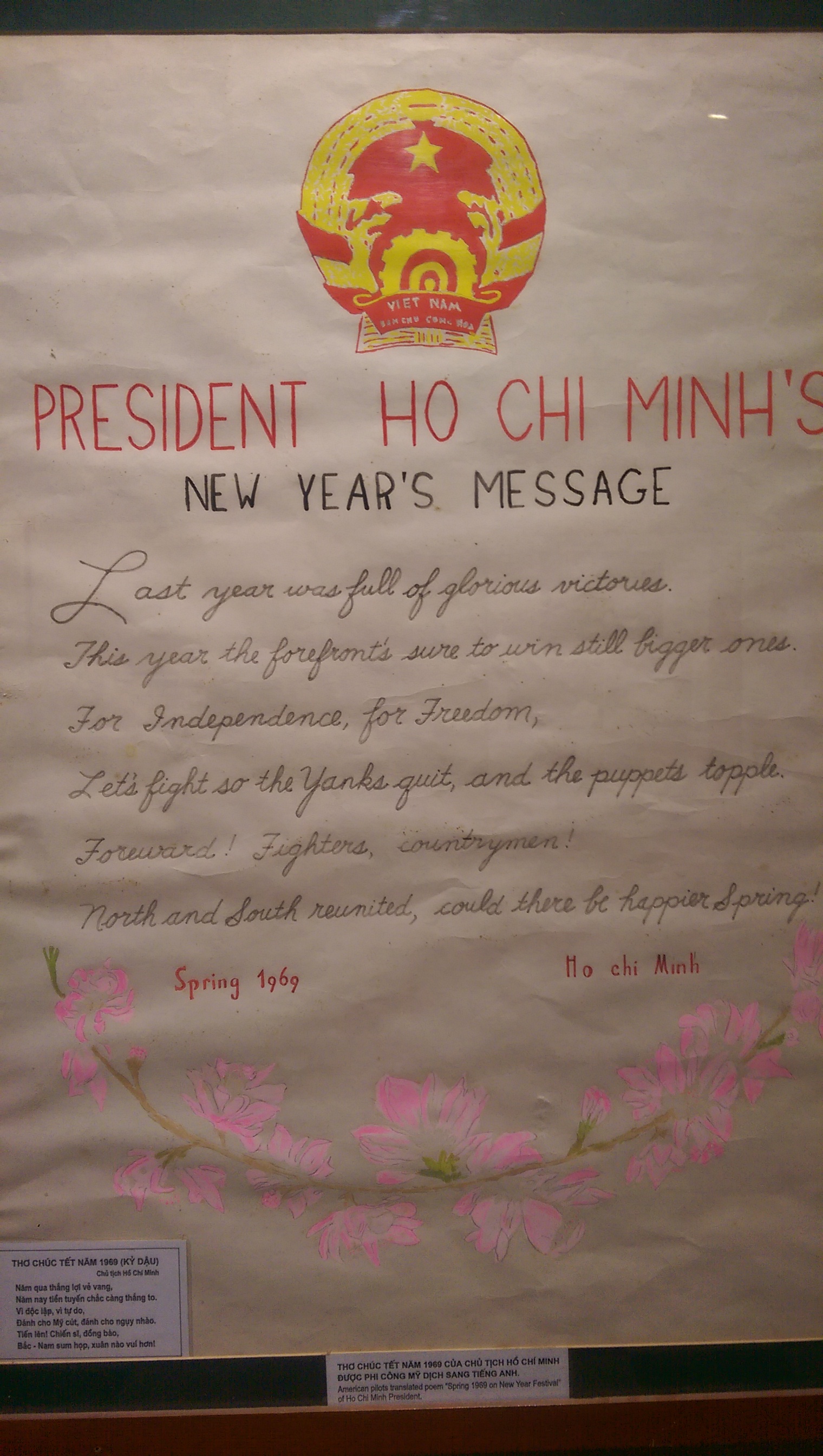 There was a corridor with newspaper cut outs of all the protests against the Vietnamese war, and the fight back by the northern Vietnamese.