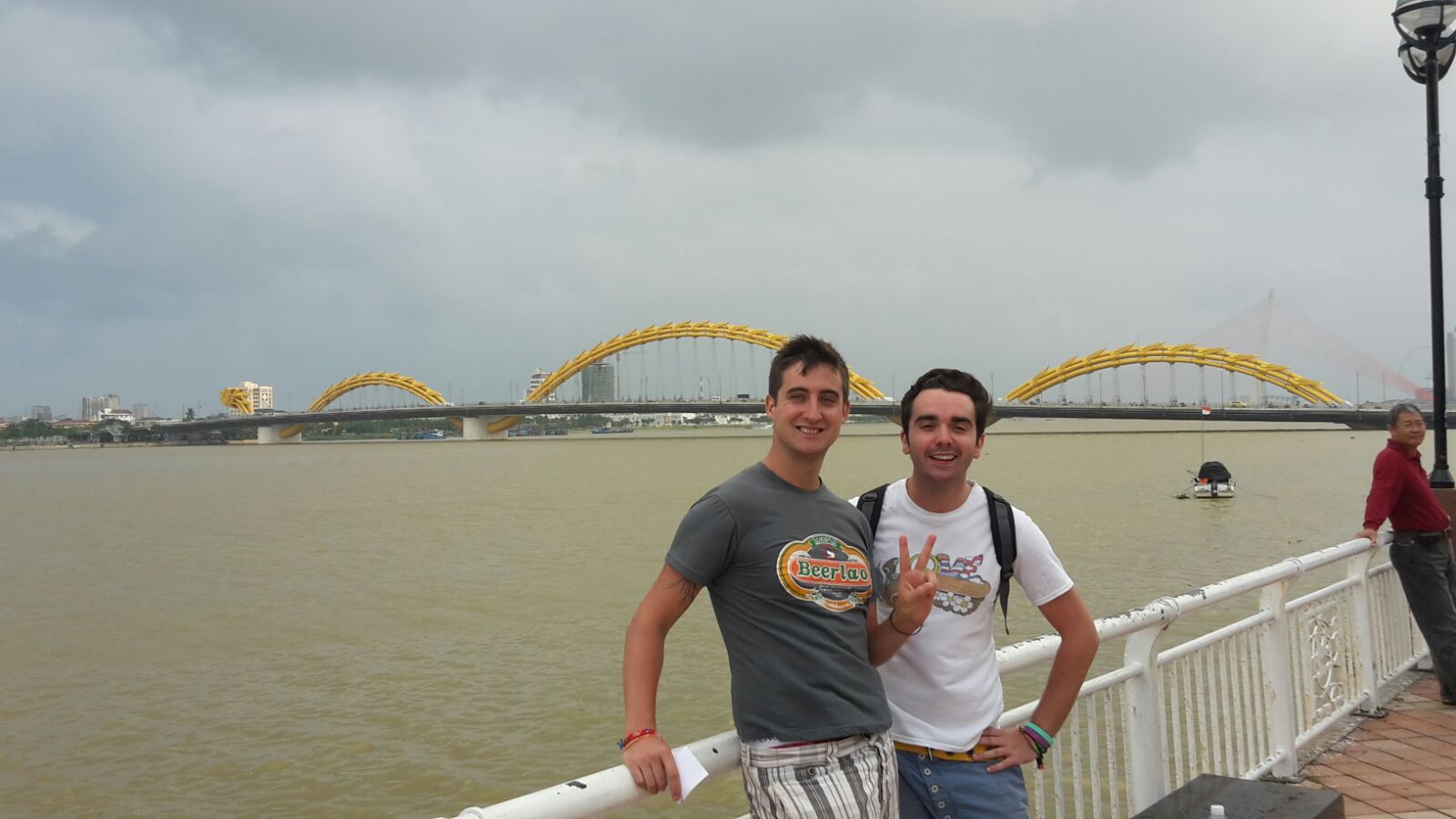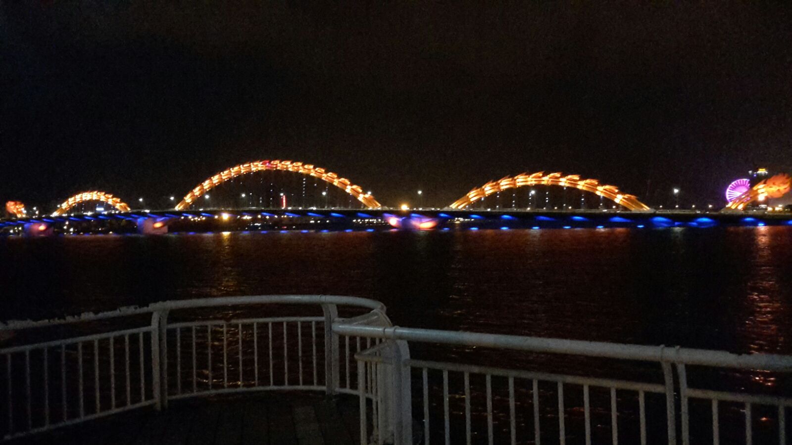 Arriving in Danang the hotel looked close to the station so we opted to walk. After 5 minutes I realised we were heading the wrong way, but a quick detour sent us in the right direction. We had splashed out on a £36 a night hotel and it was worth it. Sanouva hotel was amazing. Towering over the neighbourhood we caught glimpses of the famous dragon bridge.