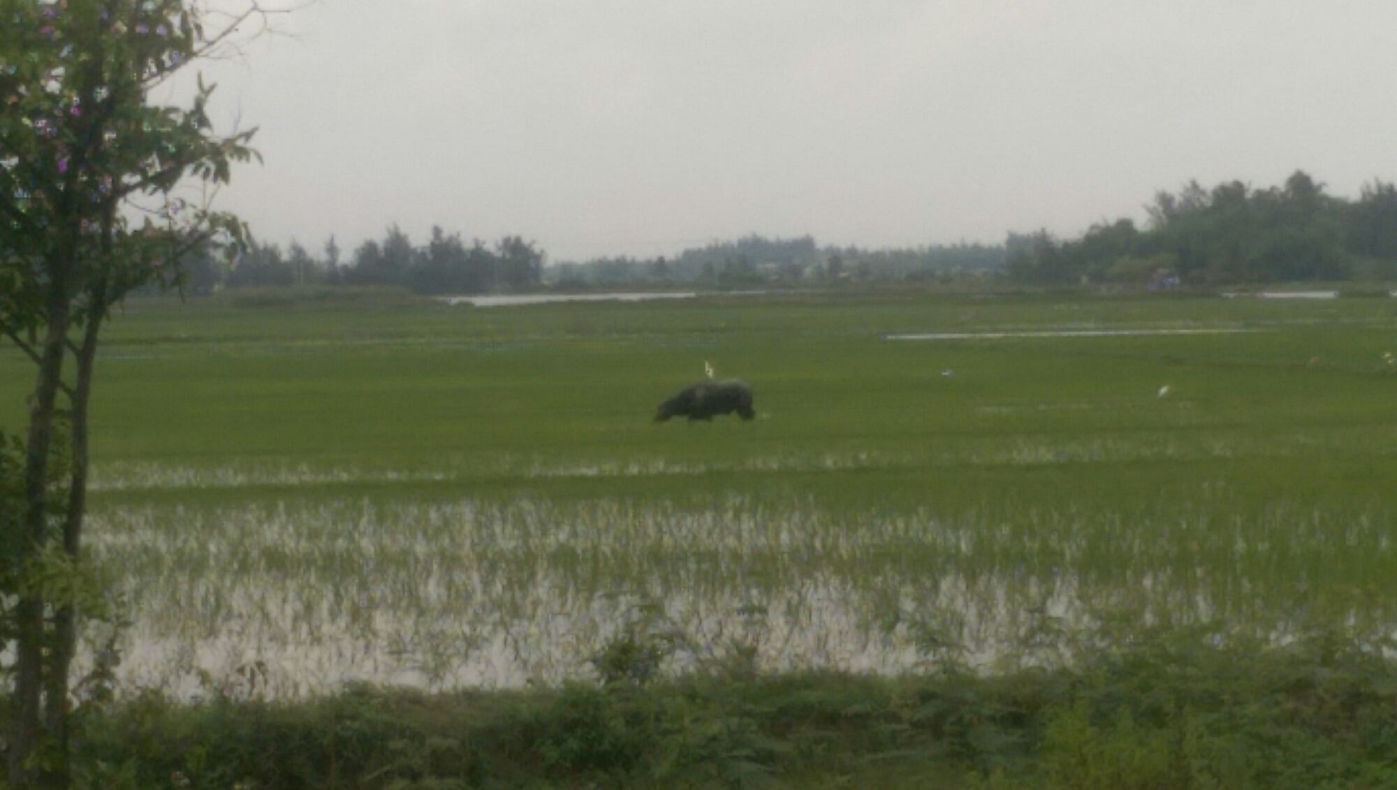Enjoying the hot weather we relaxed there till the sun had retreated behind some trees and cycled back to town. On the way there was a man sat on a water buffalo and we again got shouts of buffalo! buffalo!