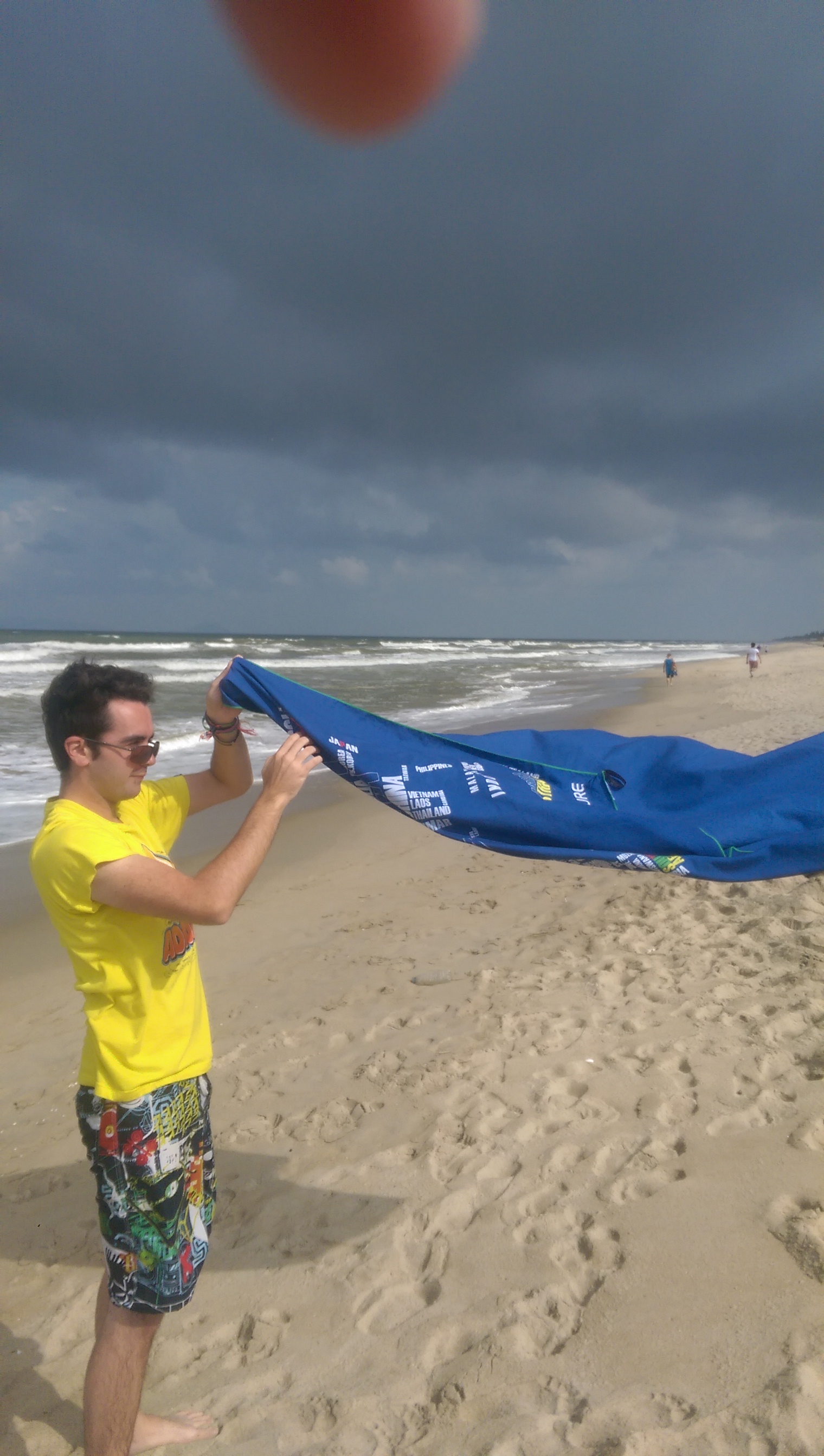 We walked past the Vietnamese touting their sunbeds and snacks, finding a good spot on the sand. Setting up we relaxed for a bit, enjoying the cool breeze from the sea and watching people swim despite the big ‘no swimming’ sign.