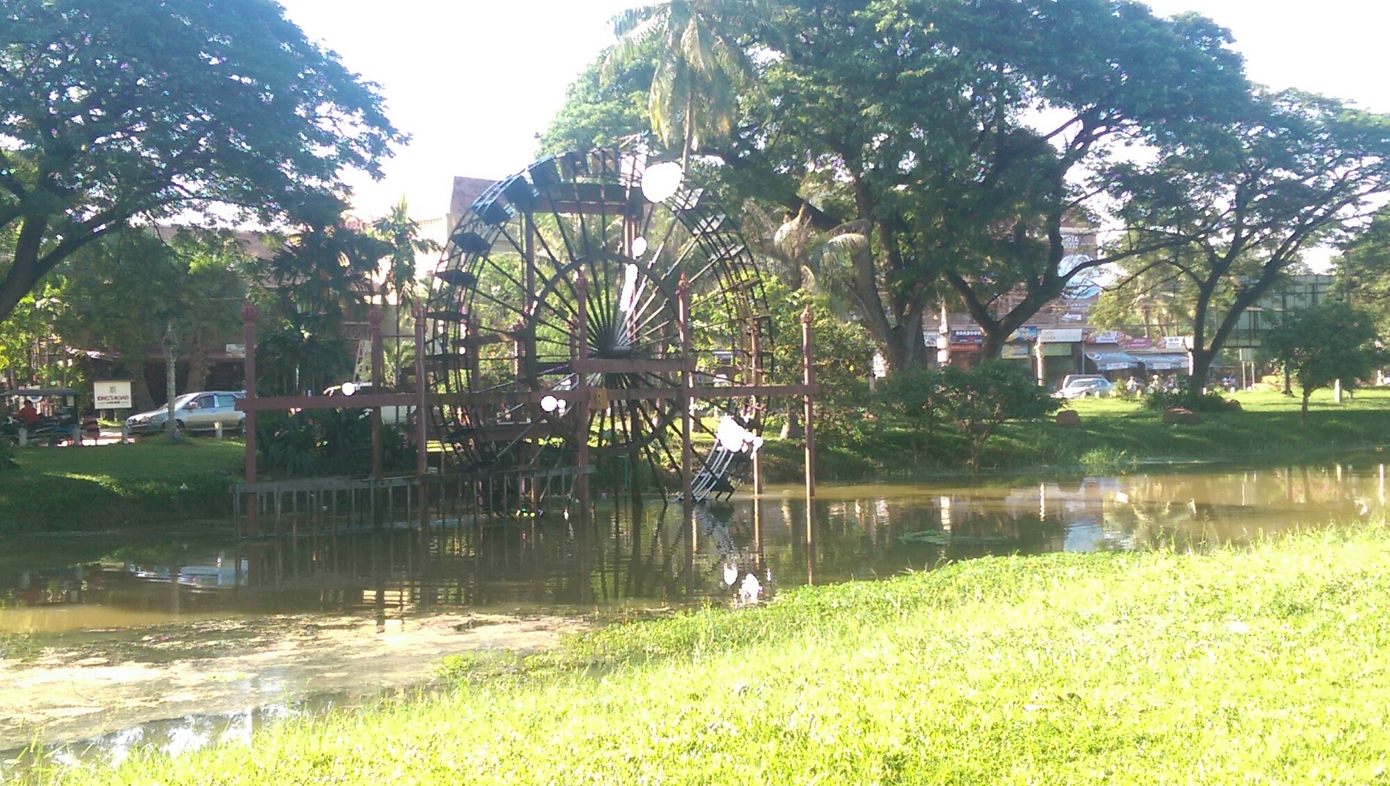 After wandering down a dodgy clay road with some stray dogs and a couple of bikes zipping past I found the river. It’s beautiful and has bridges crossing it every few hundred metres, plus a huge waterwheel.