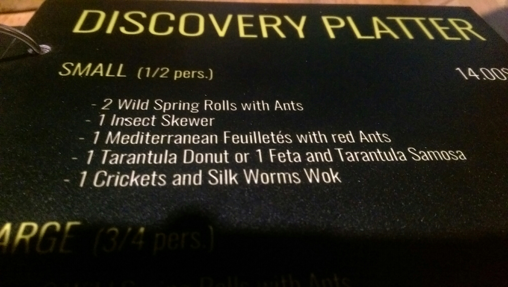 We decided to go to bugs cafe! A French owned restaurant which only serves….Bugs! It’s an entry point to eating things like crickets, larvae, ants and spiders. After chatting to the owner we lumped for the tasting platter for two.