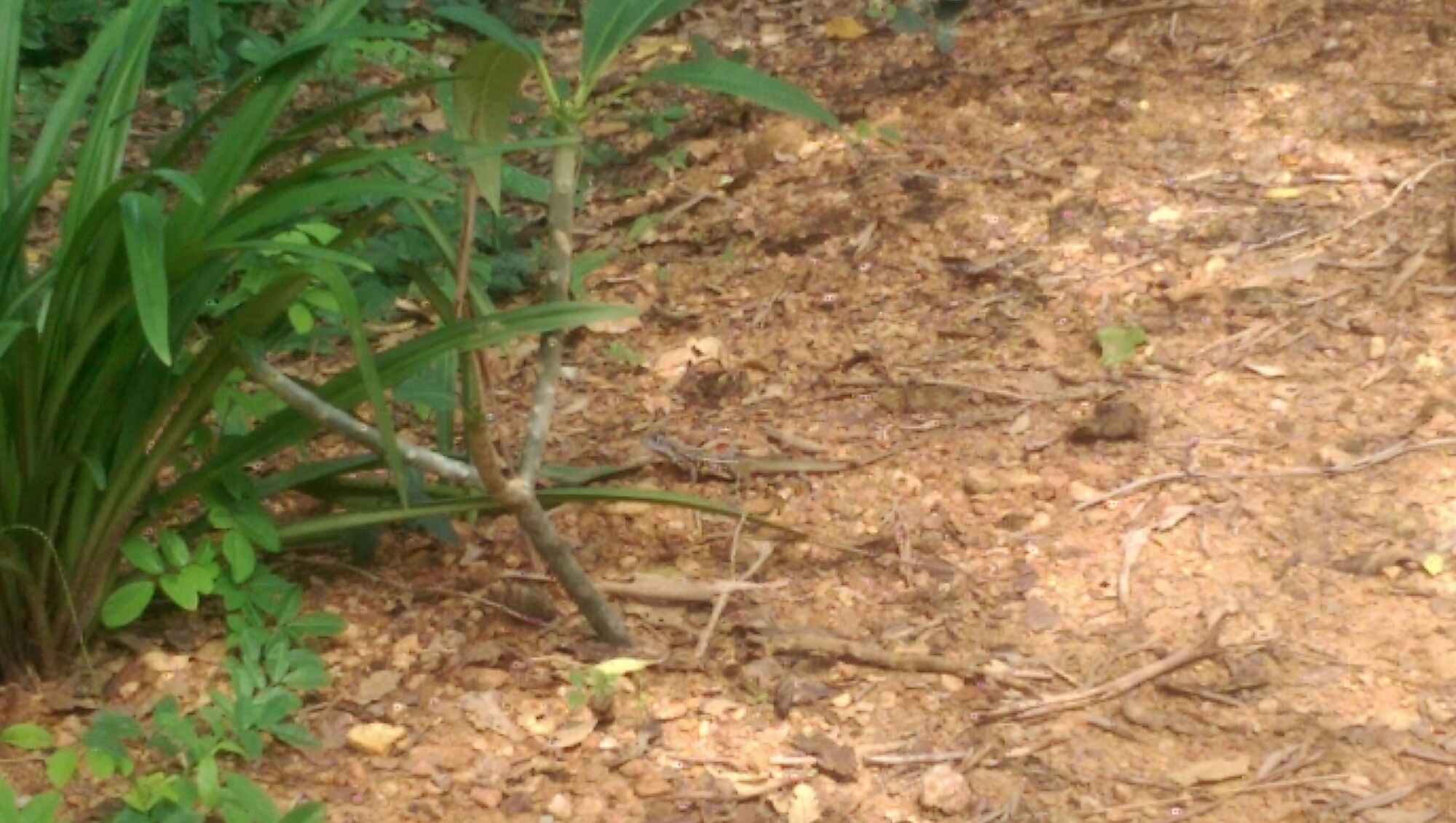At the top there was a swing made from a branch and some rope so we had a go on that and while walking over to the western side we saw a lizard with bright orange spots along it’s belly.