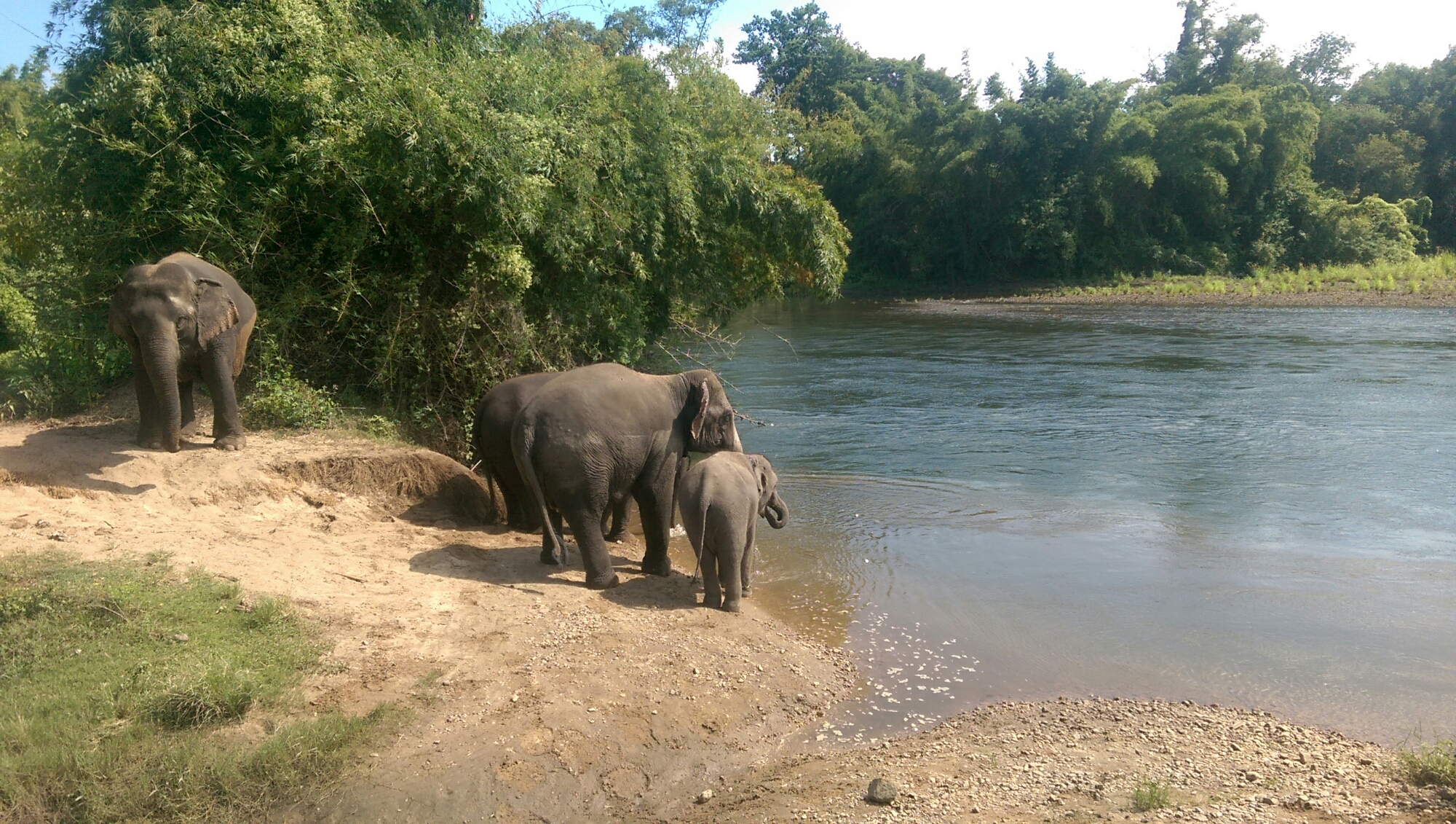 We finished lunch and watched a short 5 minute video on elephants and how intelligent they are, they can recognise themselves in a mirror and understand it’s a reflection along with other higher brain functions. You can see just how clever they are, we watched them play in the mudhole to cool off in the afternoon sun and saw one using a stick to scratch herself! They also used big palm leaves to wave flies off and cool down.