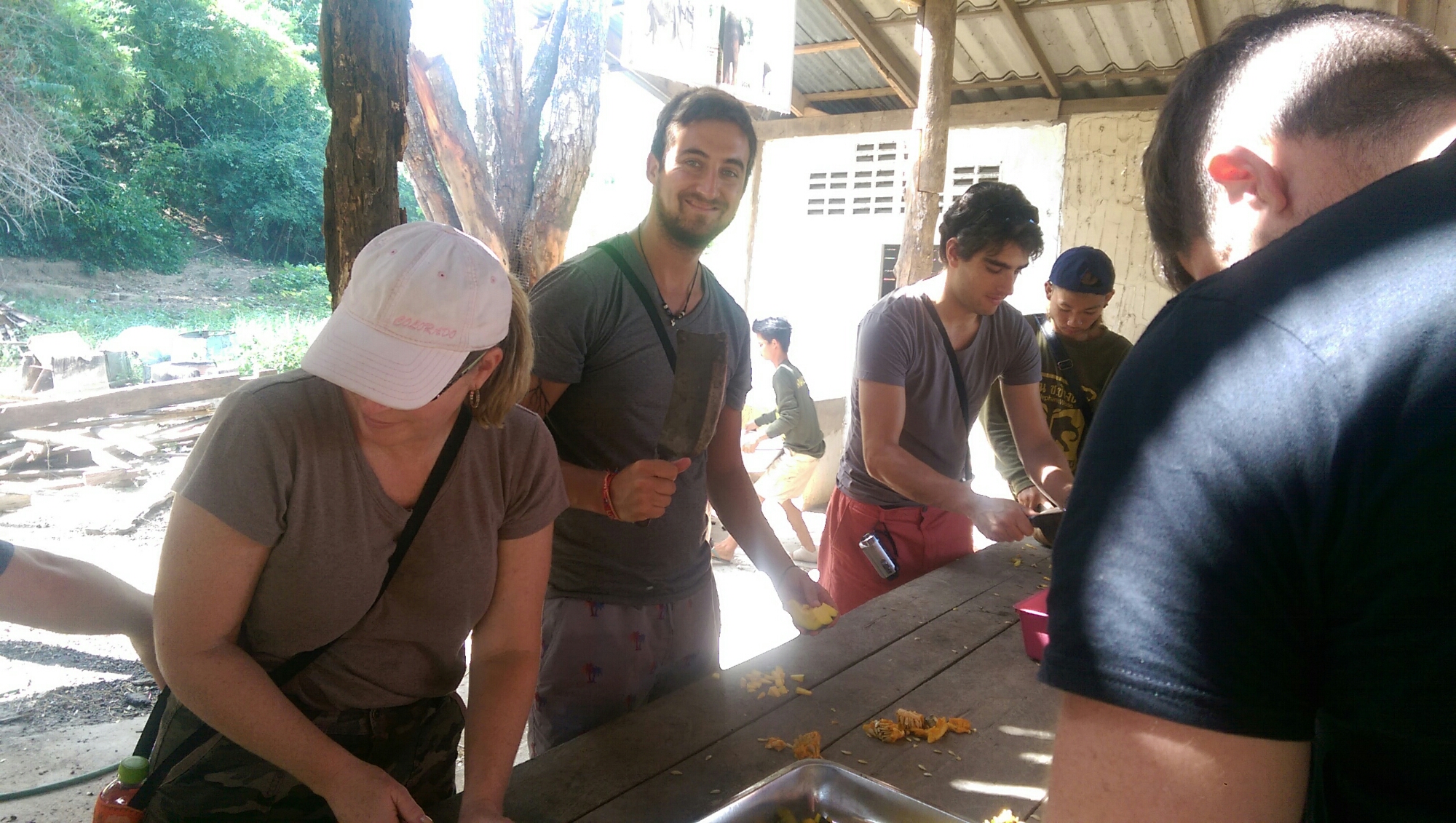 It was sad but good to learn and we then sliced pumpkin with machetes as rude boiled in a nearby cauldron. Adding the pumpkin to the boiling rice we had to use huge paddles to stir and ensure it didn’t burn. Once it was sticky enough we took of off the heat and continued to fold and stir in order to cool it down ready for the afternoon.