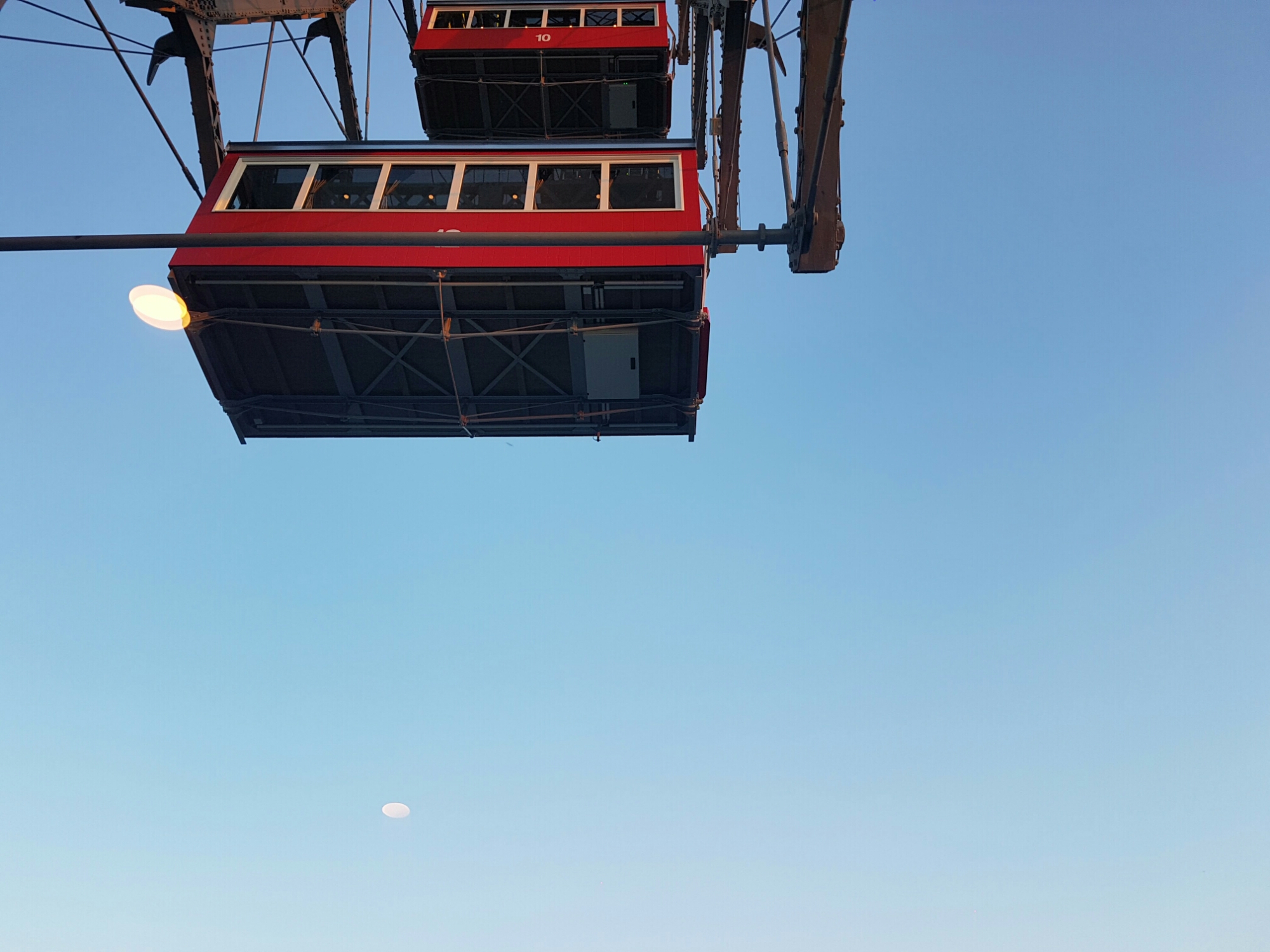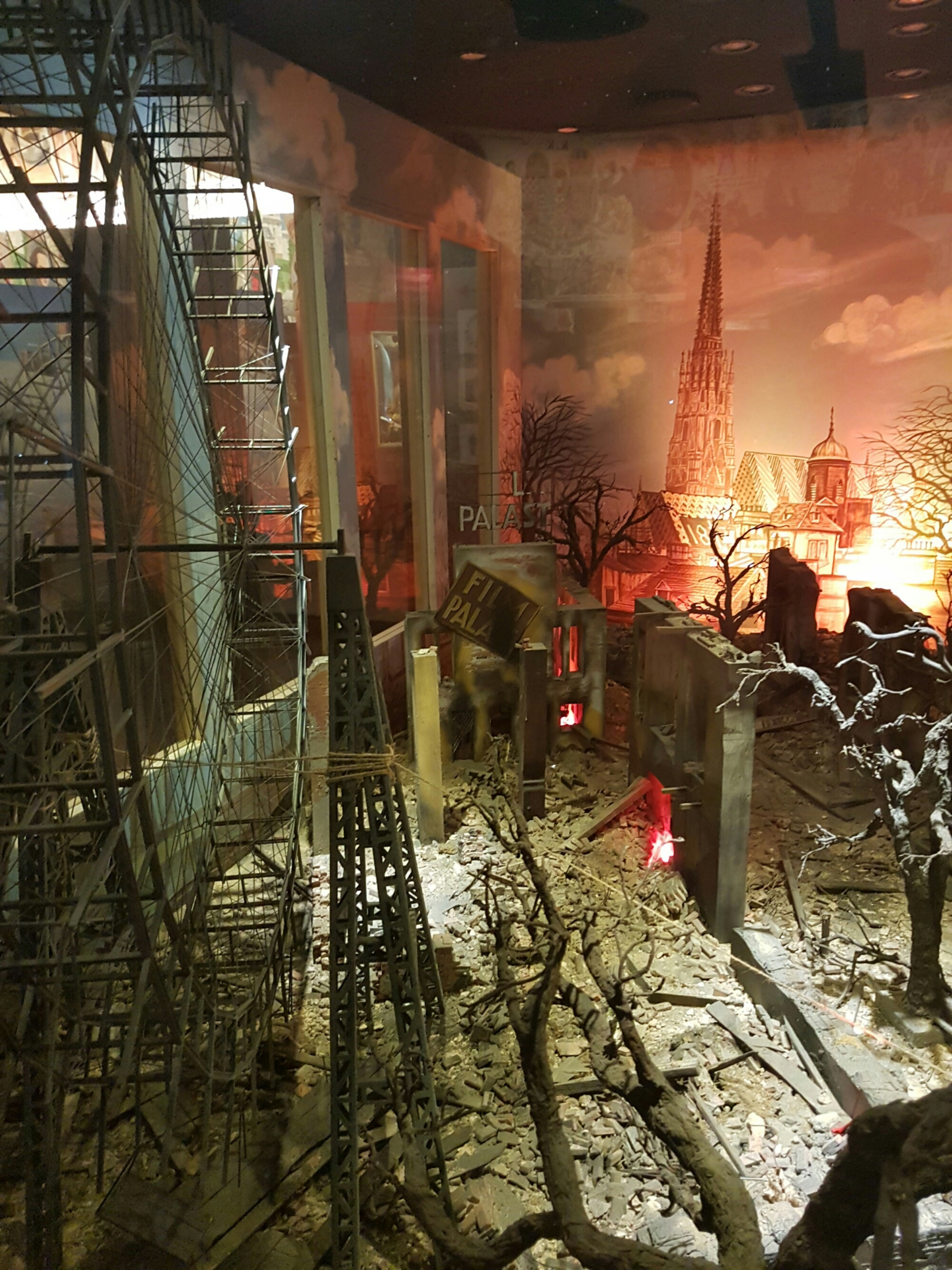 Our main aim was the big wheel and with the sun getting low in the sky it was time to board. Some people had booked to dine in some of the cars going round and it was funny to watch the waiter go in and fill their wine glasses and deliver their next course while they waited patiently for the next journey round. We even got to see models of a post apocalyptic Vienna!
