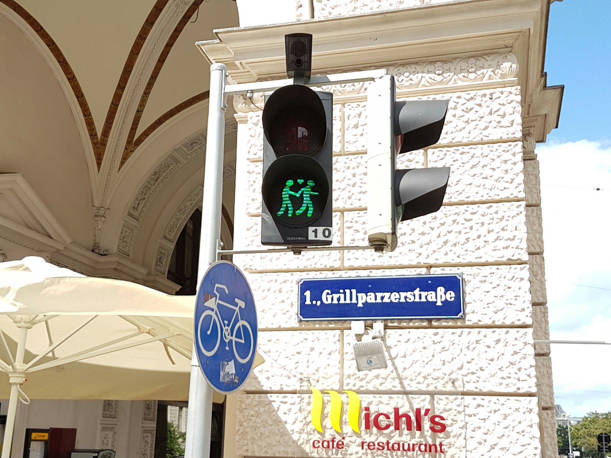 As we found ourselves getting carried away with no purpose to our walking we swung around the Sigmund-freud park, hopped onto an underground, fueled up on huge sandwiches and headed to the Vienna Opera building. I loved the road crossing lights, with the walking man or woman hand in hand with another man or woman. It was a cute little thing but a nice sign with the little heart in the middle.