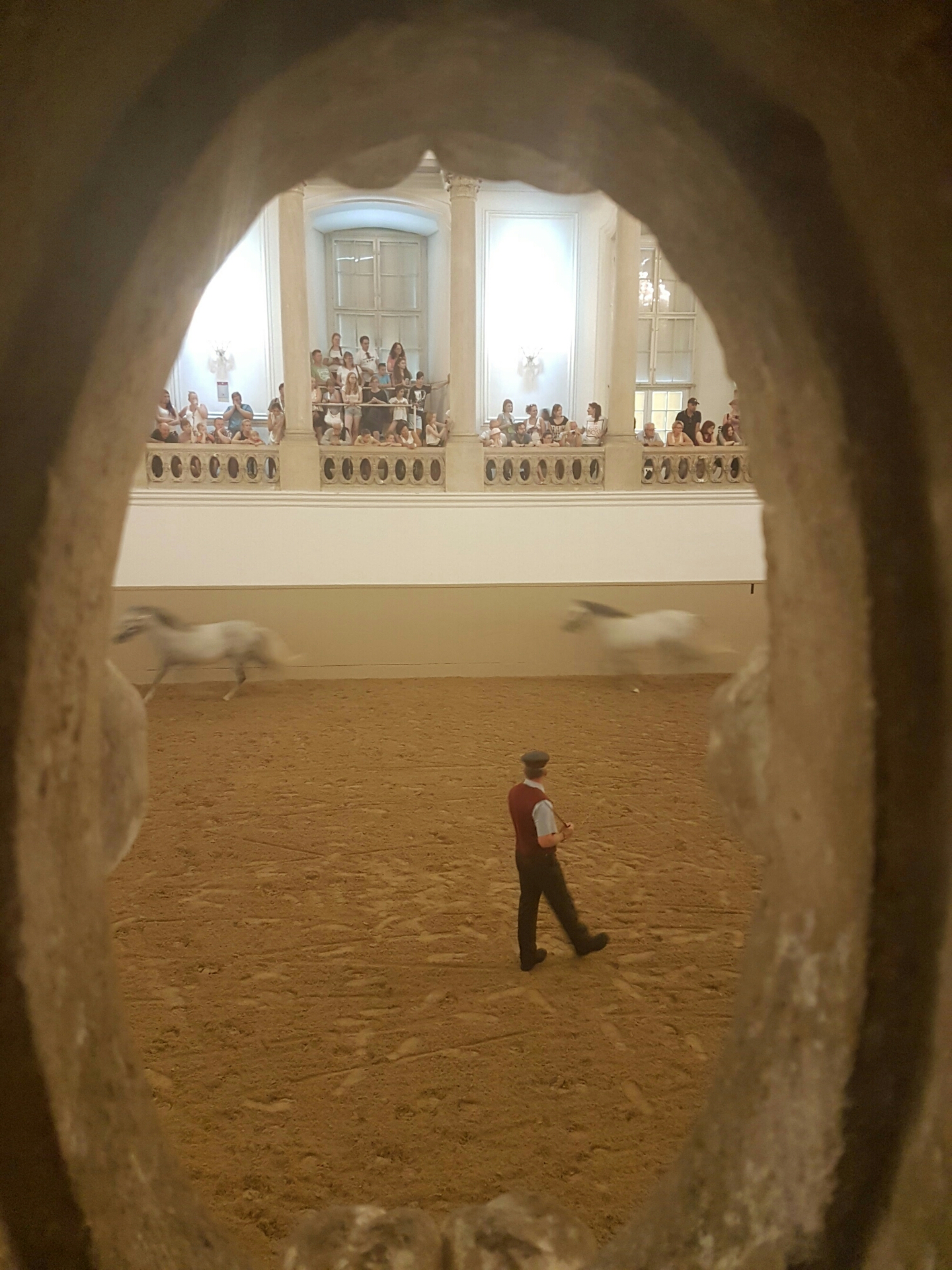 Unfortunately when we booked our tickets they didn’t tell us that the main stallions were down in Slovenia for the Summer and we had the backups and next generation horses! It was still a fun event to do but I think Peter was disappointed that it wasn’t what he had hoped for. The horses trotted about and did a few manoeuvres but nothing like the stuff Peter had shown me on youtube.