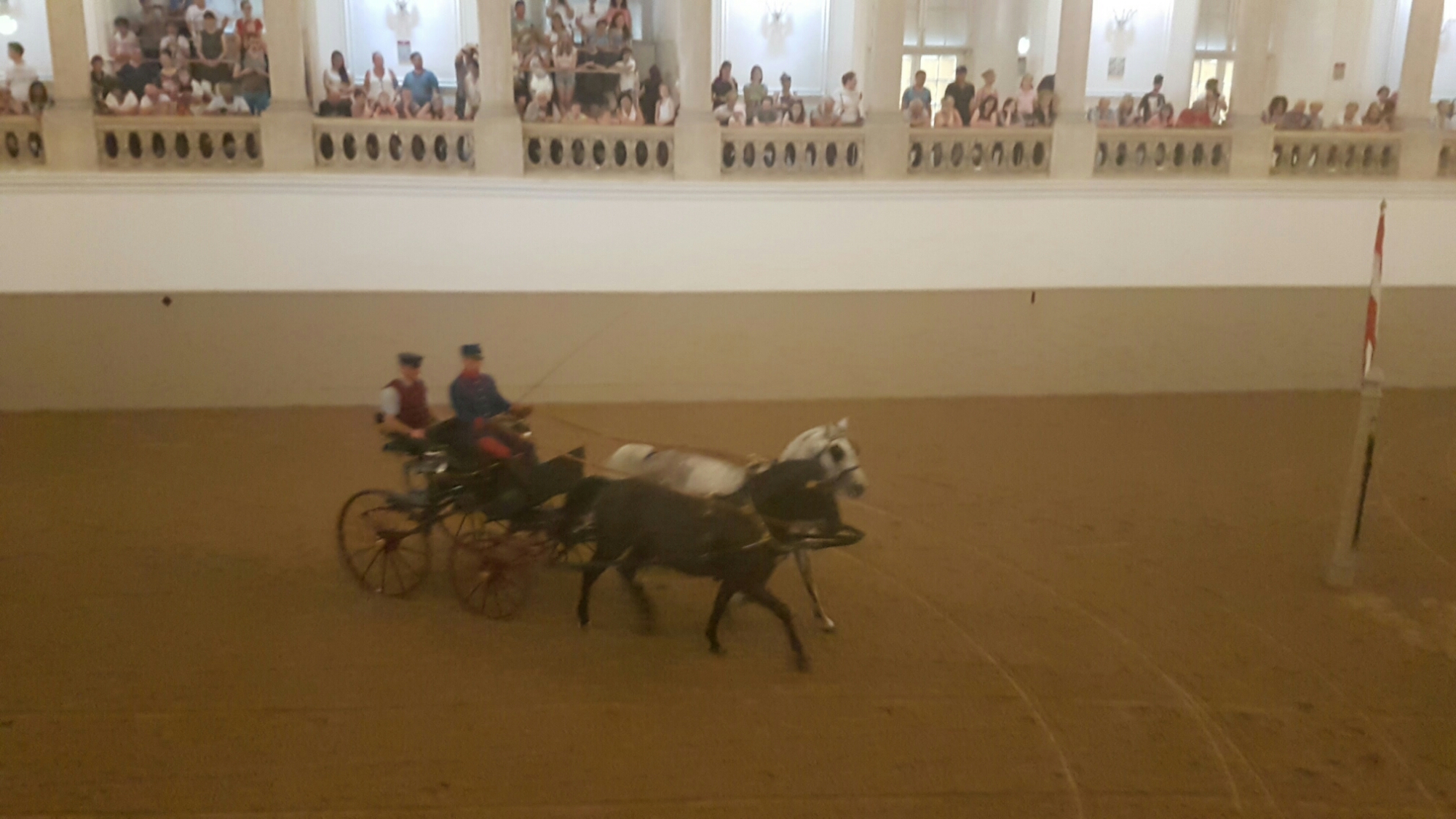 We made it to the riding school and took our seats. I knew very little about this whole enterprise but Peter filled me in on the whole horses performing etc.
