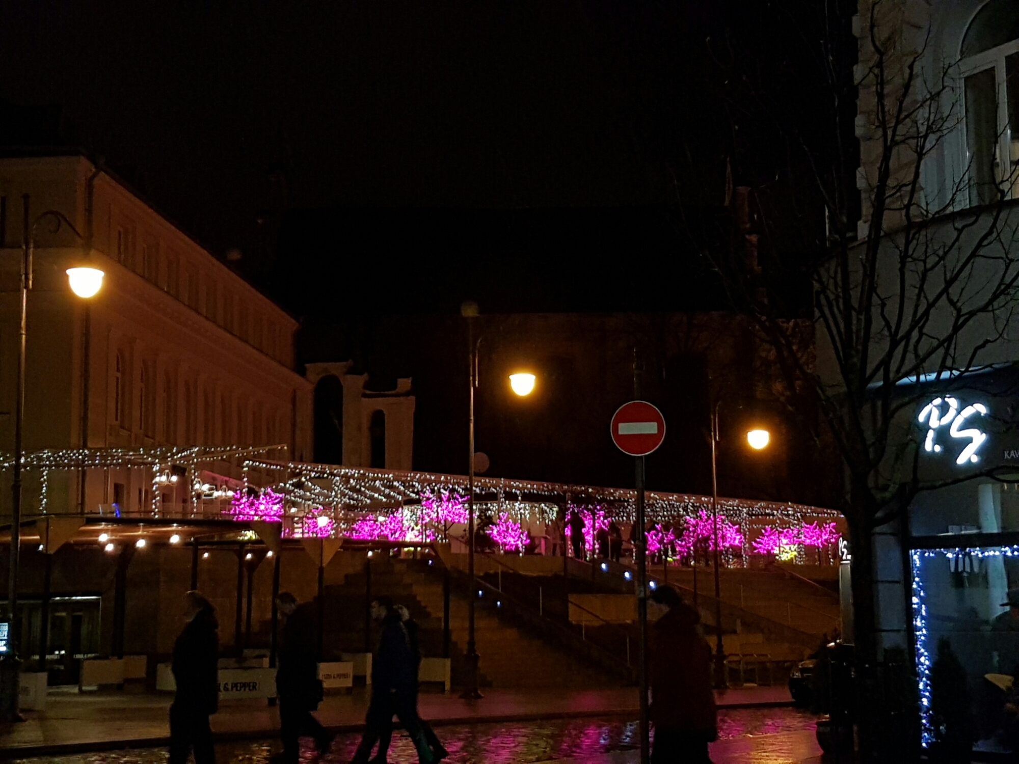 It’s a lovely way to spend an evening and the mulled wine was lovely I think the snow always makes things seem that bit more magical too. Everyone soon started to feel the chill however so off we went to find warmth and shelter. On our way I had read about the Stebuklas tile which, when spinning on it clockwise, would grant you a wish.