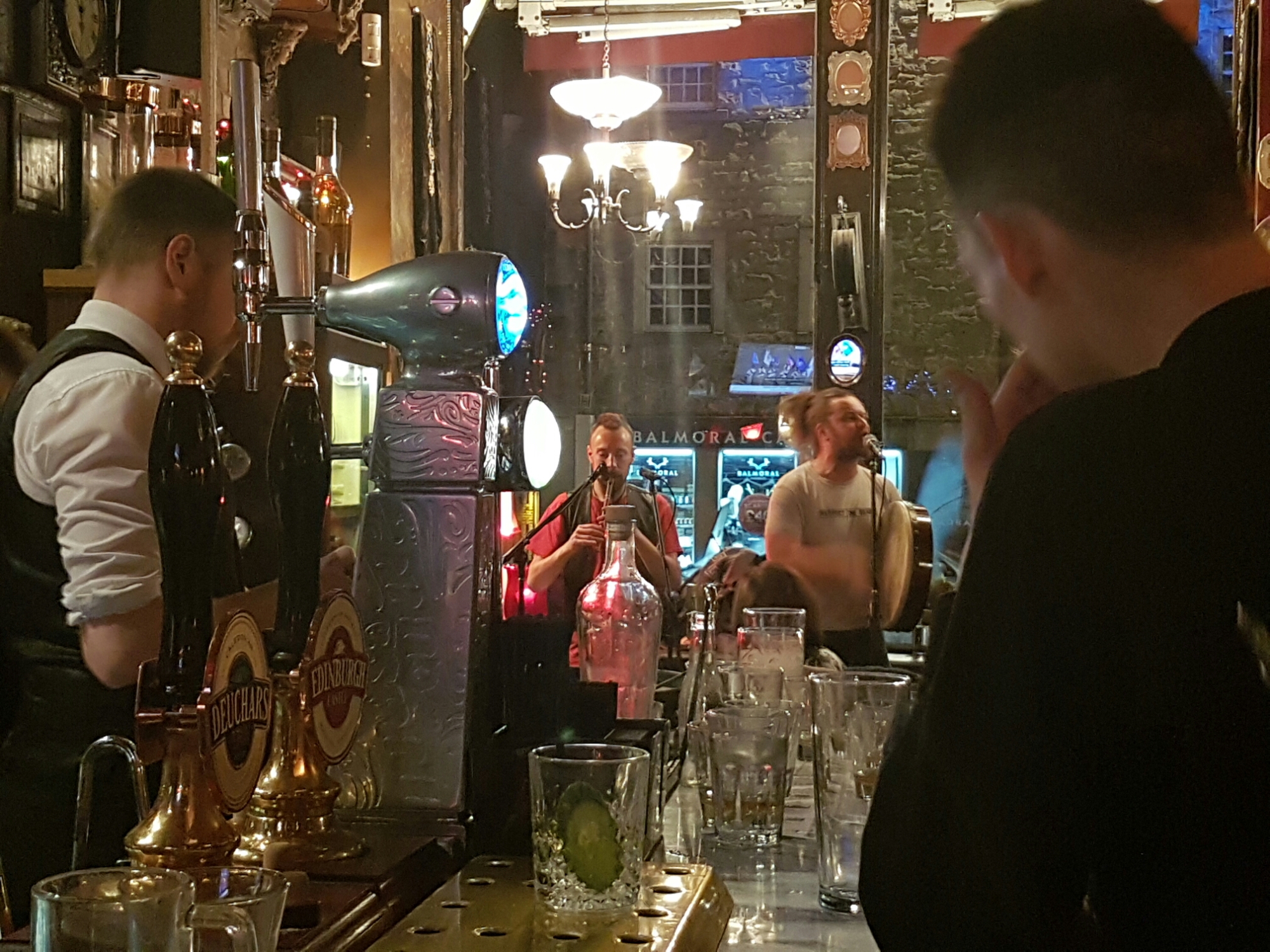 We needed a beer after that and to get out of the cold once we were topside so we did a pub crawl down the main old town street which incorporated a pub selling drams of whiskey for hundreds of pounds, a raucous pub with Scots singing, cheering and stamping their feet and a live band singing every song with a thick Scottish accent.