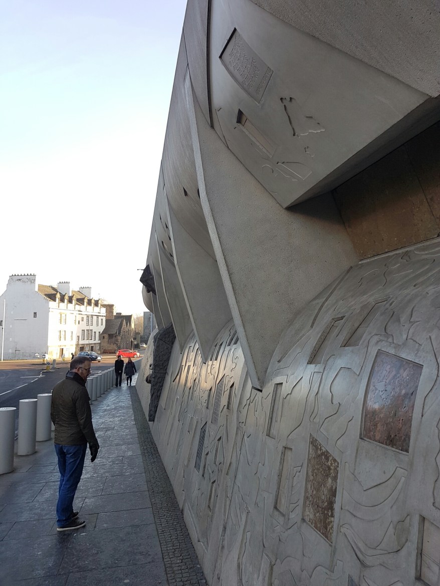 The next day we walked down the royal mile to the Scottish parliament building. Finished in 2004 it’s an impressive post-modernist structure. Though we couldn’t get too close. One wall had famous Scottish quotes all over it which was cool.