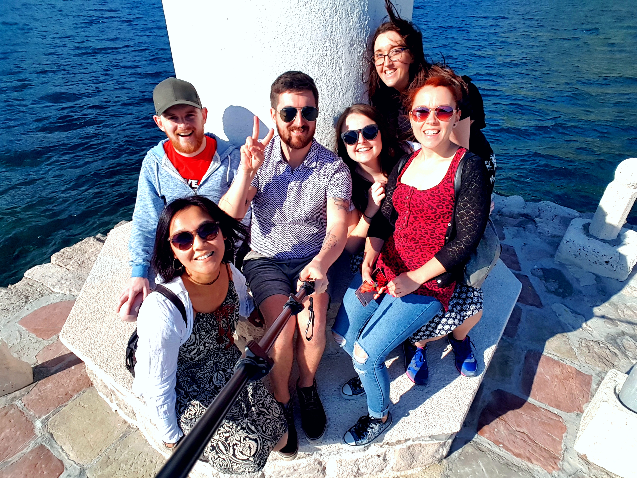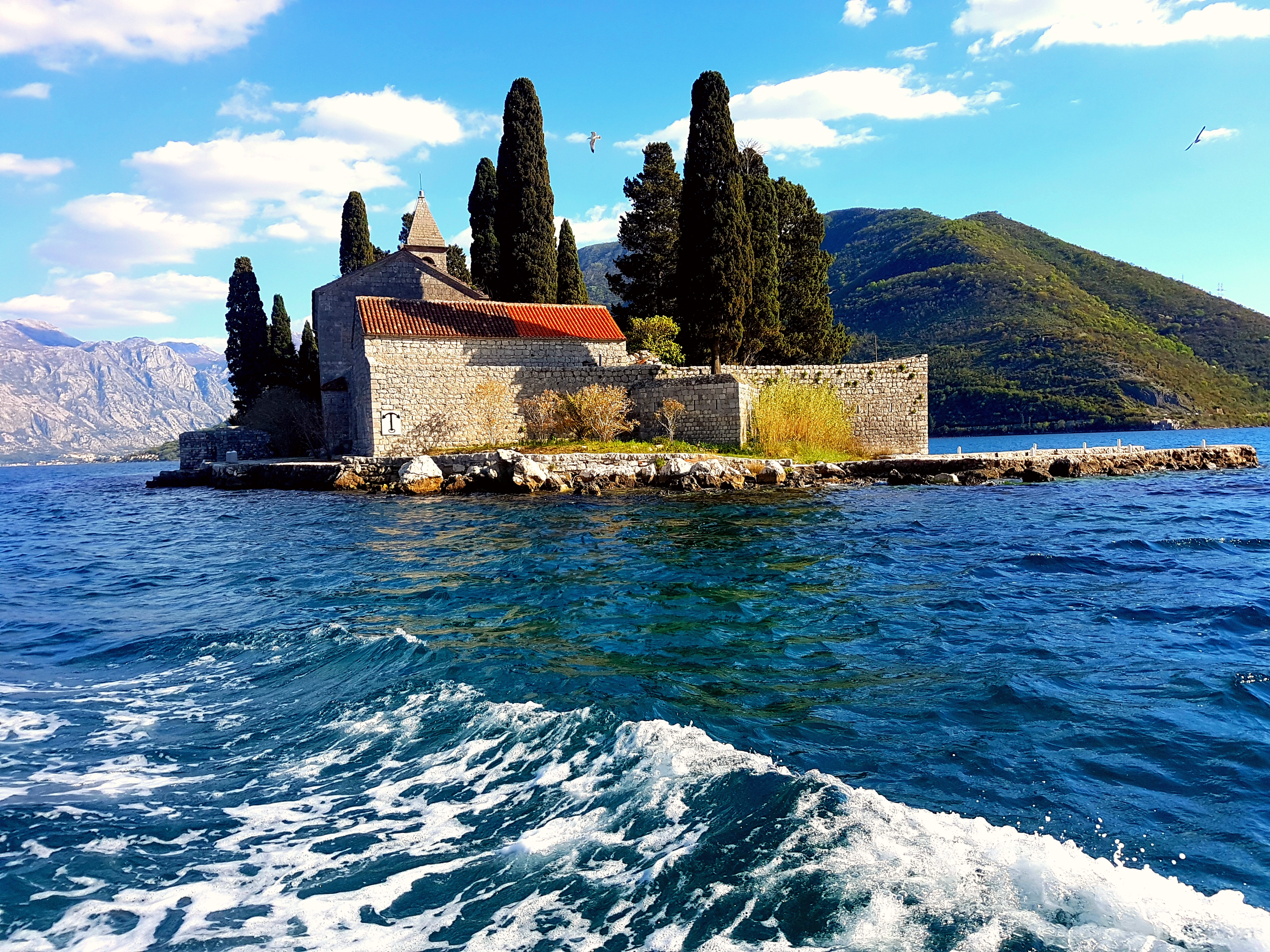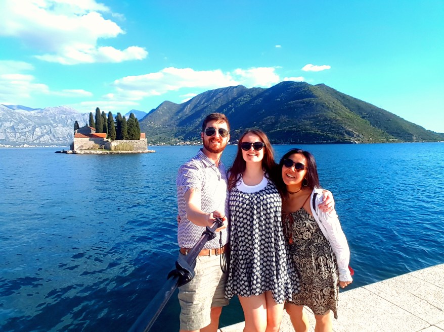 We set off and we were all excitable as we charged off over the water with the sun shining. There was loads to see as we sped past little towns and took in the views all around us. Montenegro scenery is dramatic and we were utterly spellbound by it’s beauty. Our first destination was our lady of the rocks, a man made island with just a church and a lighthouse built on it. It was really beautiful and interesting and we got some great group pictures there.