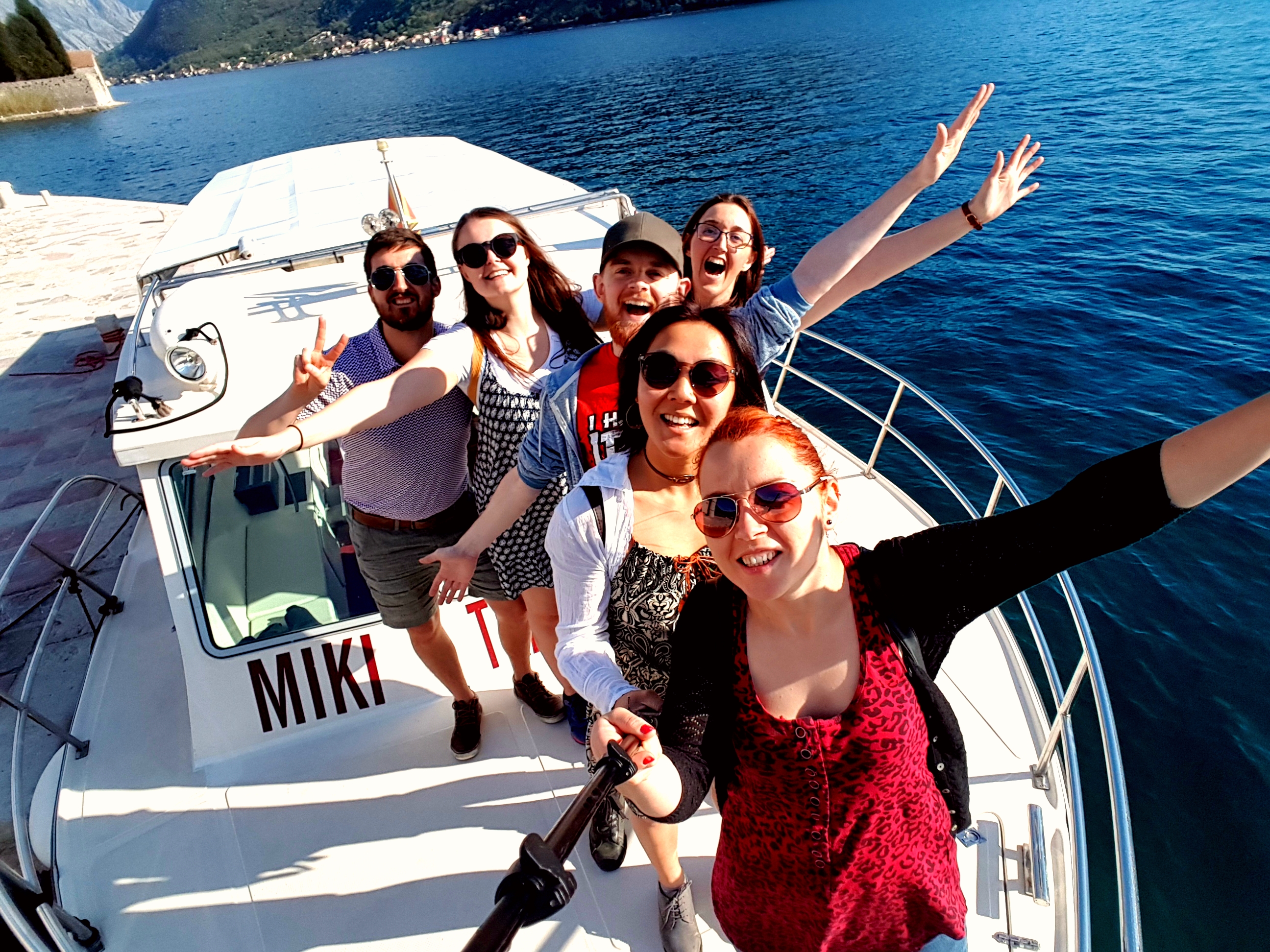 Now it was time for the surprise, everyone brought drinks with them and I was told to bring something. We walked down towards the old town and marina where we met mickey who had a boat waiting for us! It was so great to have my own private boat trip around Kotor bay and such an amazing surprise from everyone.