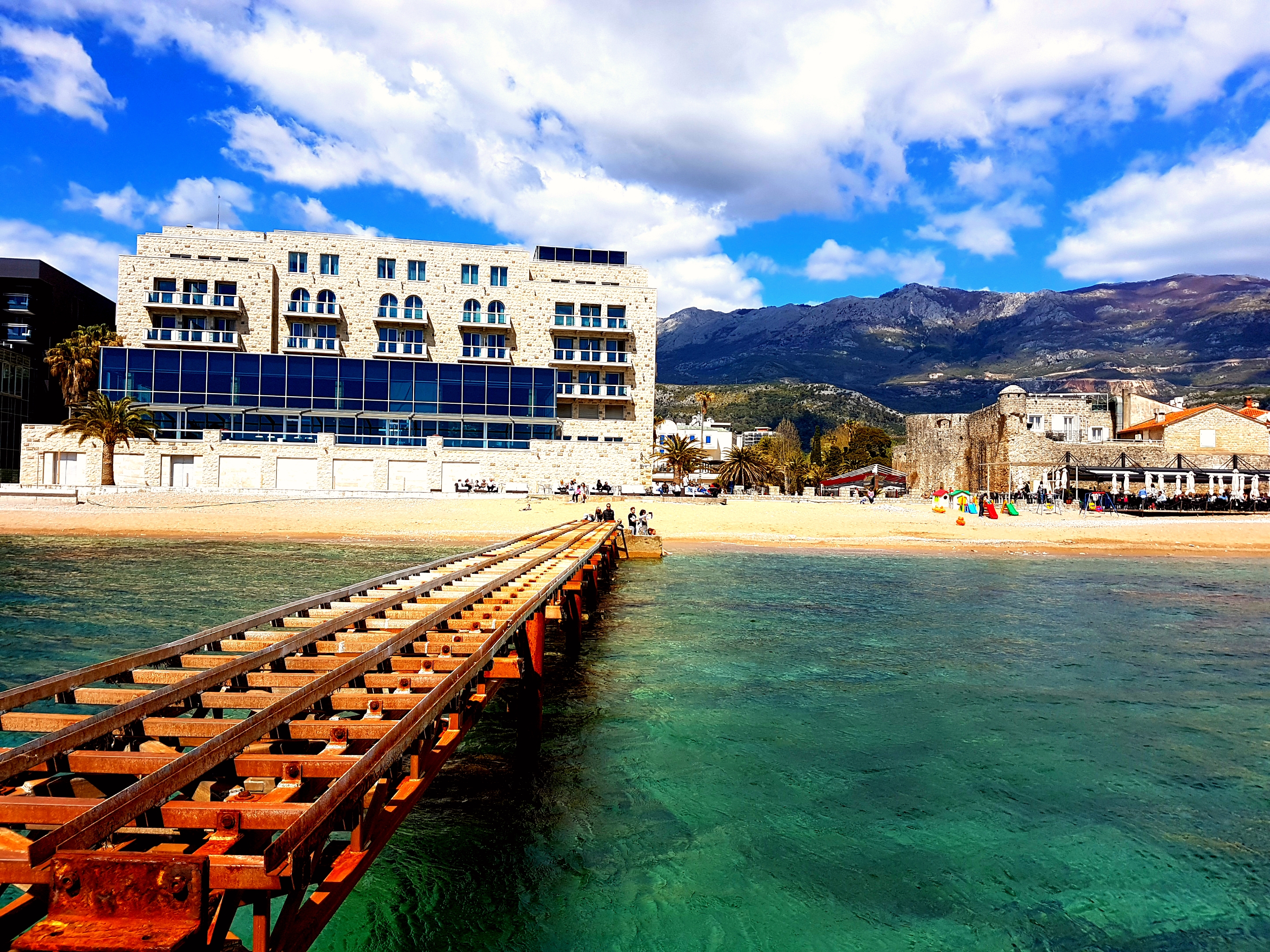 We wandered around the old town, which has a different vibe to it than Kotor, more stuff going on and a bit fancier. There was a big fortress and some nice little squares dotted around the place. With a lovely little walkway out to the beach.