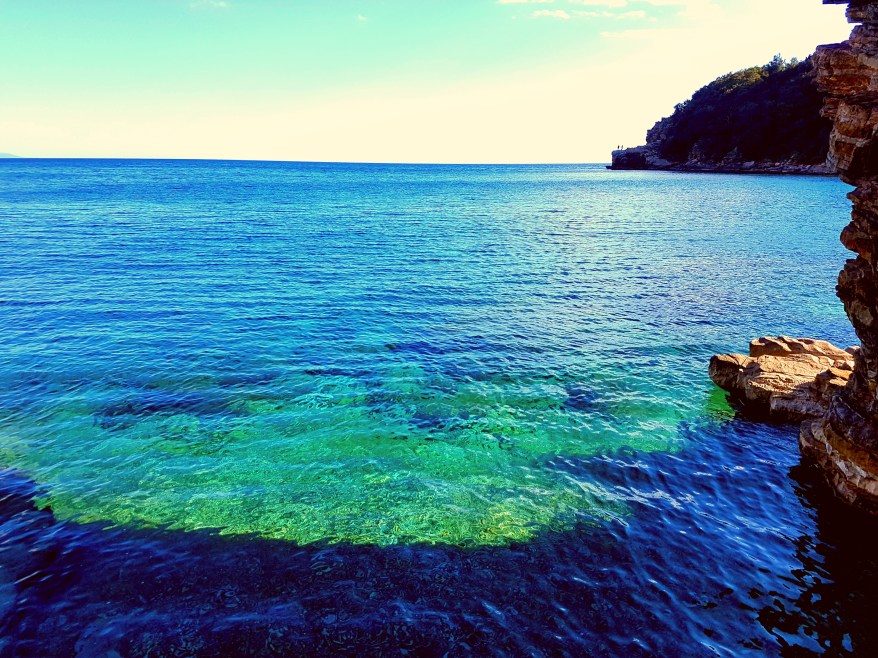 We arrived at a stony beach with lovely views out over the sea and found our spot. There were a few locals sunbathing but no one in the water. I paddled in a bit and it was pretty cold, but I dived in and a few of the others joined me. We managed to stay in for a while and had a bit of a swim, then a few other people arrived on the beach and jumped in. The water was crystal clear and actually quite refreshing.