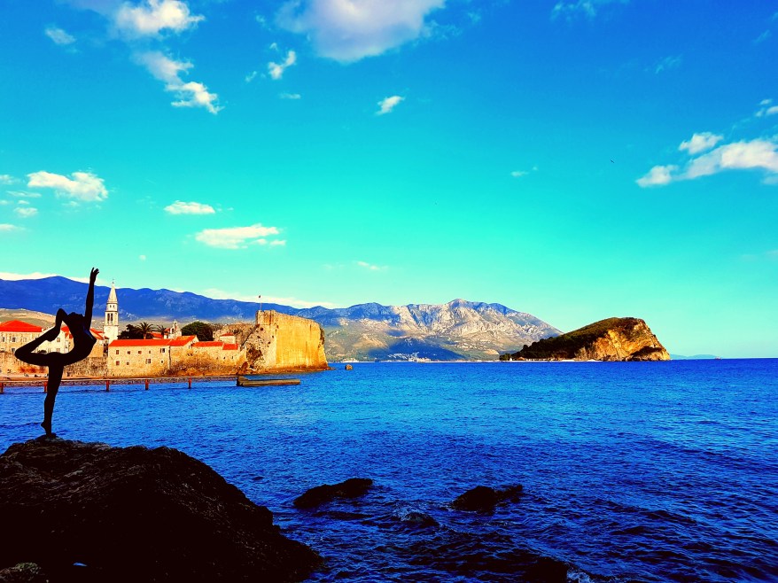 Once we had finished our food it was beach time! The sun was out and it was lovely and warm, for us Brits anyway. We walked to the far end of the little Budva beach and around the cliffs on a walkway. Stopping to see the ballerina statue.