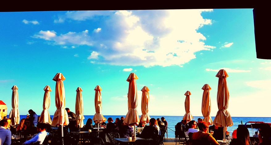 We headed down through the town to the marina and headed down a promenade looking for lunch. We found a place with tables out on the beach and had some traditional food, I had Cevapi, little kebab like sausages which I would see (and eat) all over the Balkans.