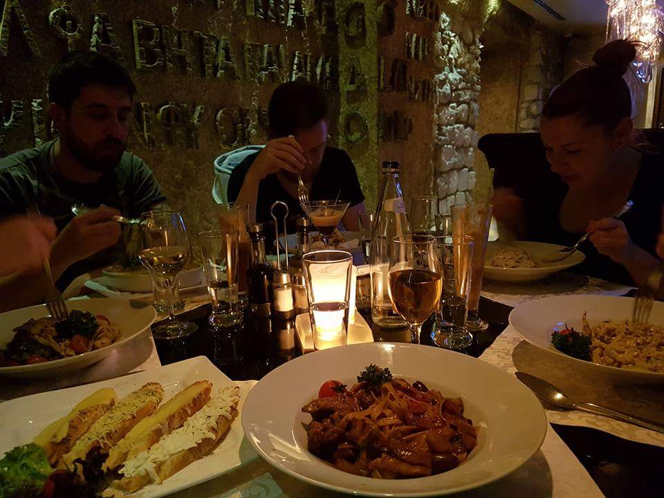 It was the last night and we all had to be up early the next day, Sarah was finally flying out and we were continuing on to Croatia and the others were flying back. So we had an early dinner at the Astoria in Kotor eating comfort food before heading back and everyone passing out.