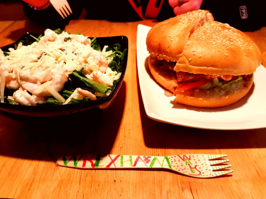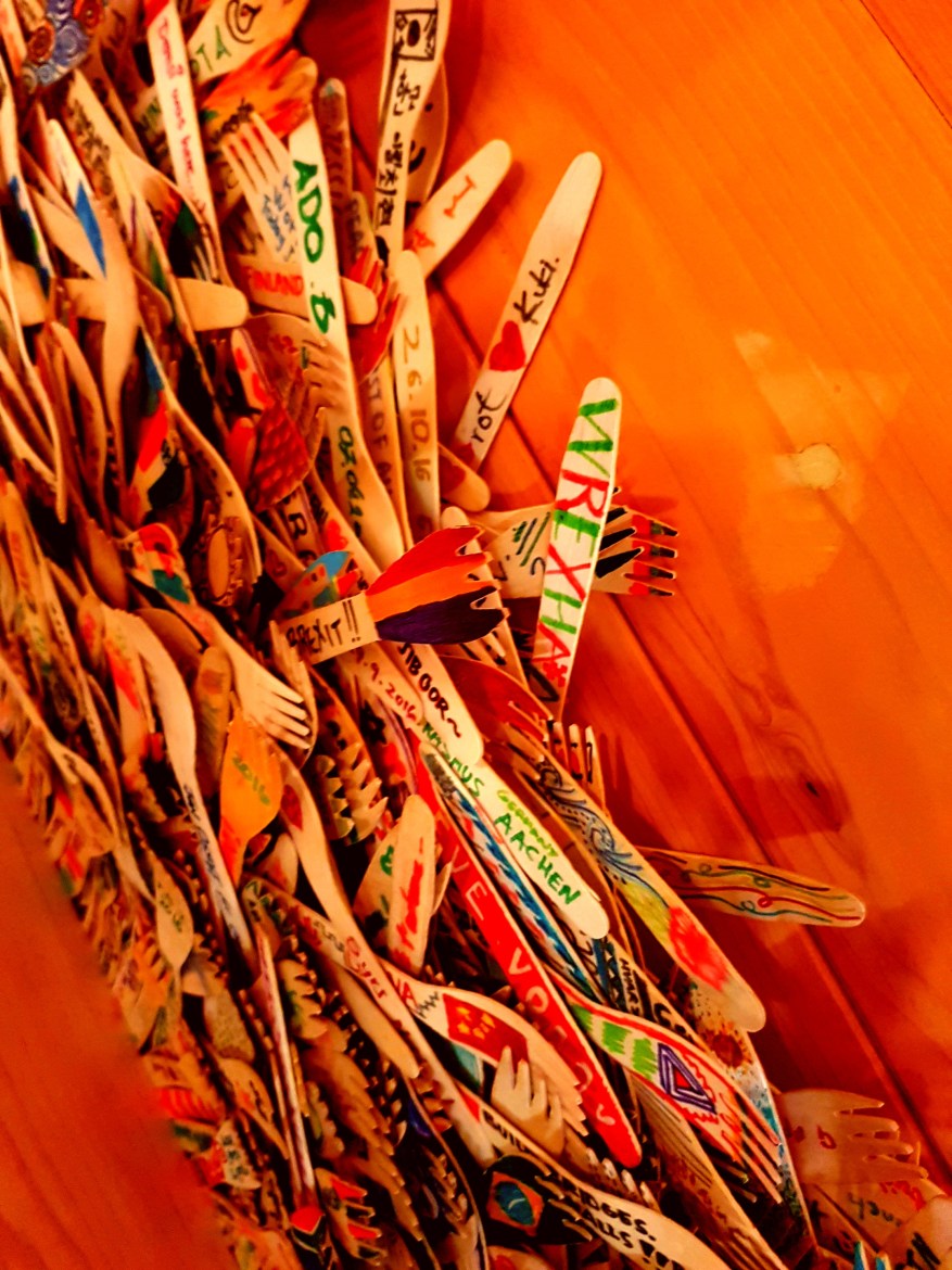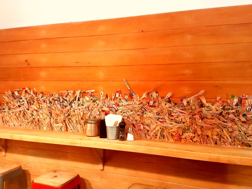 The cool thing about the place is the pens with which you can design a wooden fork to go on the wall there. This was my Wales/home town inspired masterpiece.