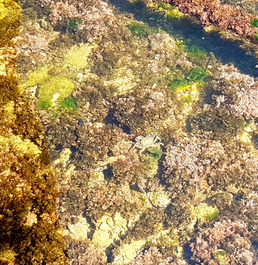 There wasn’t a soul to be seen as we sat on an old concrete jetty and marveled at the amount of marine life we could see. The sun was out again and the water glistened as we dumped our bags and walked around to the beach, climbing over rocks and even finding some hermit crabs!