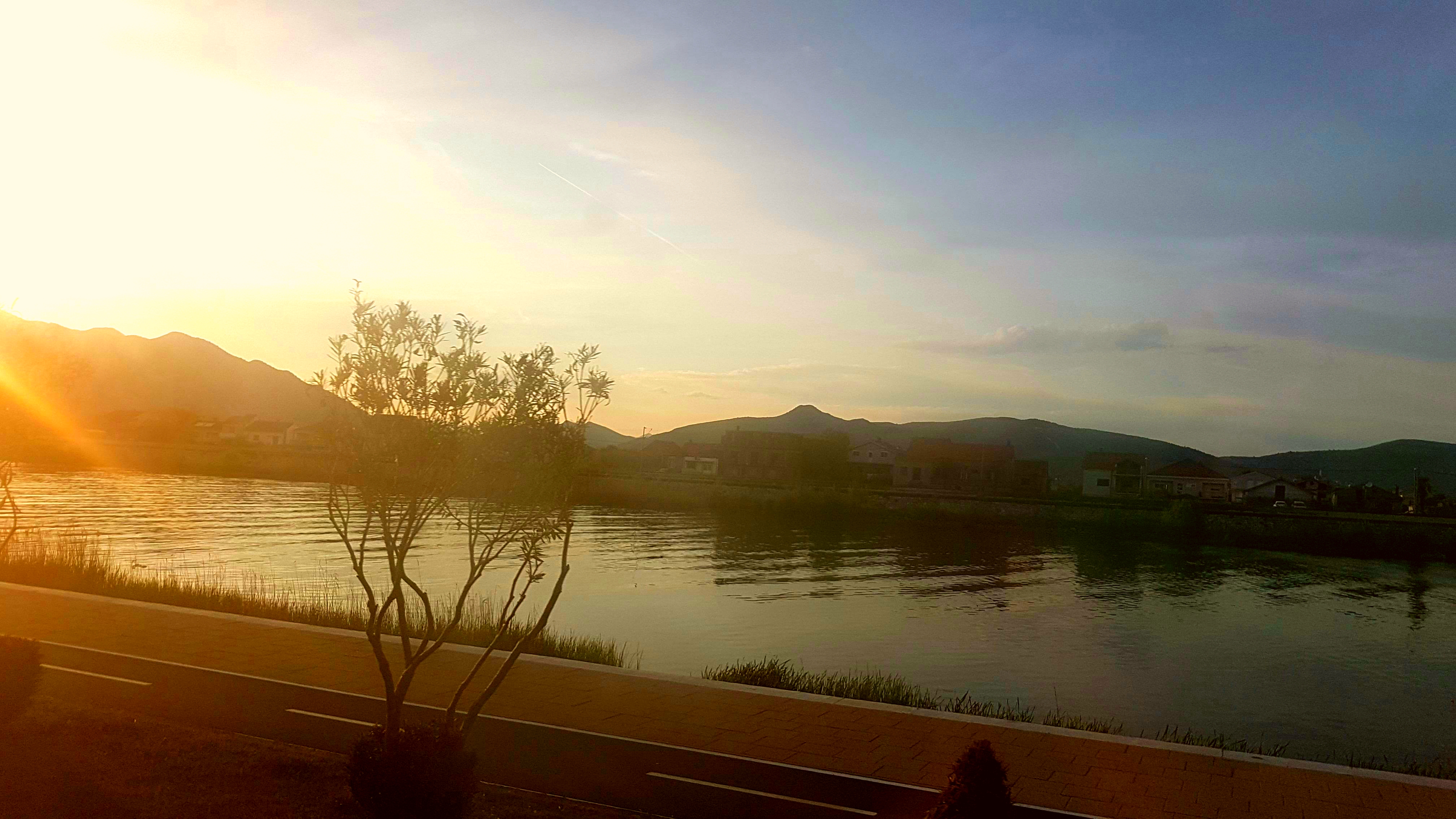 The station has a huge supermarket right next to it so with the last of our Croatian money we got drinks and snacks for the journey. We still had an hour to wait so we went down to the waterfront again and sat enjoying the last of the sunshine as we’d be on a bus until it went dark from this point on.