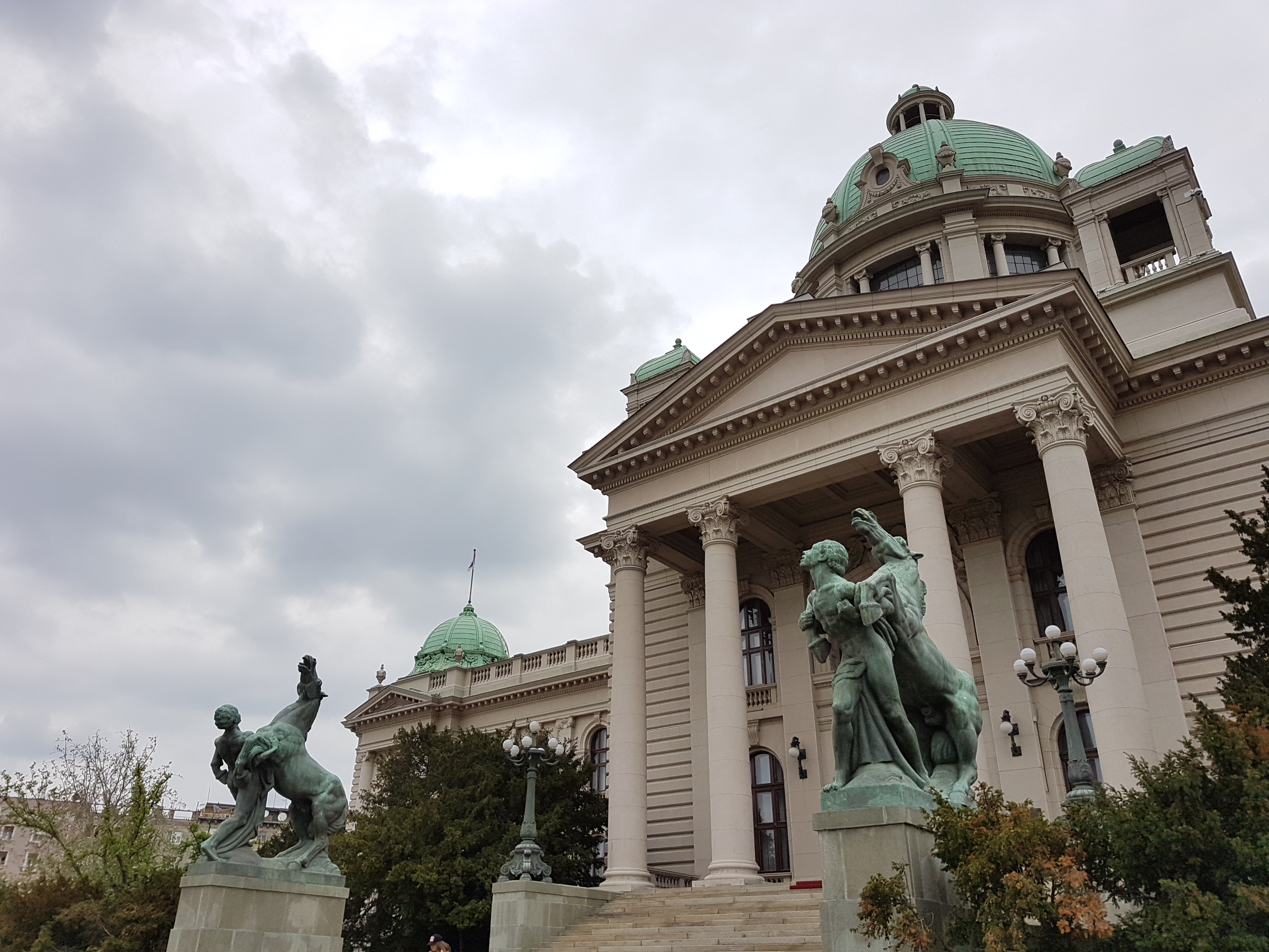 We stopped by the parliament buildings, city assembley and presidency. The  assembley building has two statues outside, one of a man pushing a horse in and one of a man pulling a horse out. It’s meant to symbolise man’s struggle with nature but Serbians joke that it symbolises the difficulty with which politicians can be removed and new politicians replace them.