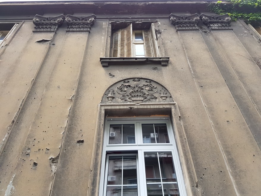 We passed through streets, discussing the contrasting architecture of a city that has been bombed and conquered countless times. It’s very interesting and although it doesn’t have the charm of other Eastern European cities it has it’s own vibe that’s really cool. We walked past the only mosque in a city that was under Ottoman rule for long periods of history.  We also went by a building with bullet holes from the 1st and 2nd world wars.
