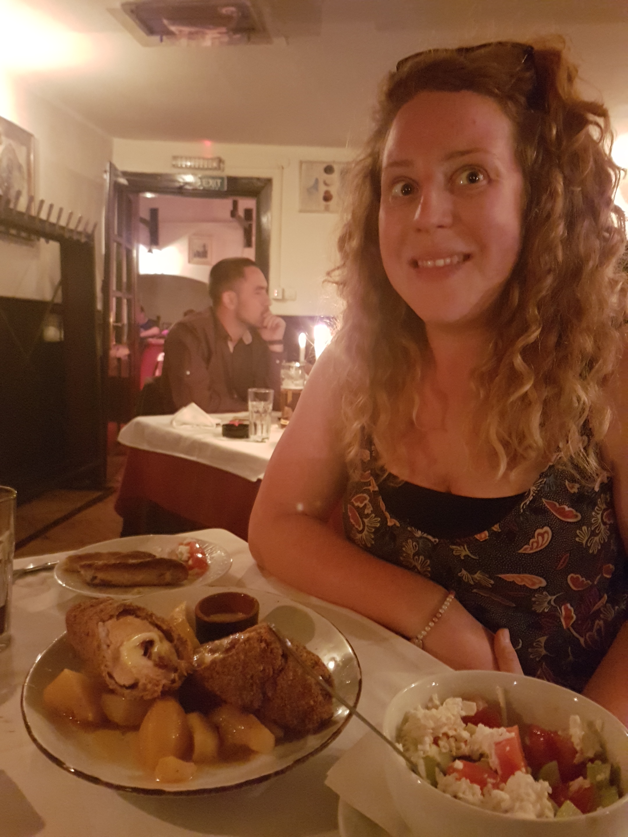 This time we tried traditional schnitzel type food. It was huge and delicious. I had the proper rolled pork stuffed with cheese, Sarah had a take on it, chicken stuffed with meat and cheese. It was almost too much but tasted so good.