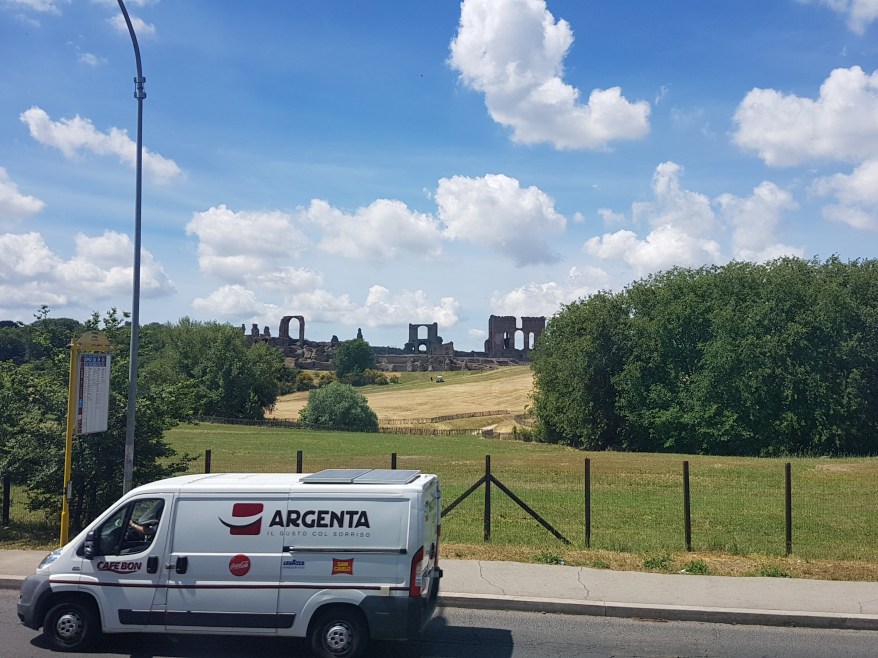 We arrived at the airport and through security with plenty of time to spare so we grabbed breakfast and I got the obligatory pint as we waited for the flight. It’s an easy 2 hour 45 minute flight from Manchester to Ciampino airport which is situated just outside of Rome centre. It’s really easy to get a bus just outside the main airport exit, we saw people queuing for them and hopped on, buying a return ticket for 9E each. It takes around 40 minutes to get to Termini, the main bus/train station in Rome, with some ruins to see out of the window on the way.