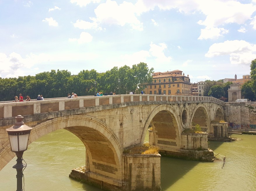 Our walk took us through Piazza Venezia where the Il Vittoriano dominates the skyline, past Largo Di Torre Argentina an archaeological site near to where Julius Caesar was killed and down to the river. Our apartment was located just off Via Giulia, a street in the historic centre of Rome, we arrived and although we had tried to call the apartment company we had no reply, so we wandered around the beautiful little streets and found a small restaurant to stop and have some lunch.