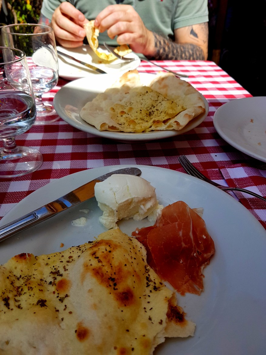 The food was incredible, freshly baked thin crusty bread, sliced cured meat and big lumps of mozzarella cheese. All washed down with a 5E carafe of wine! We were sat in another piazza, I think we lost count of the amount of piazzas we wandered through by the end of the 6 days.