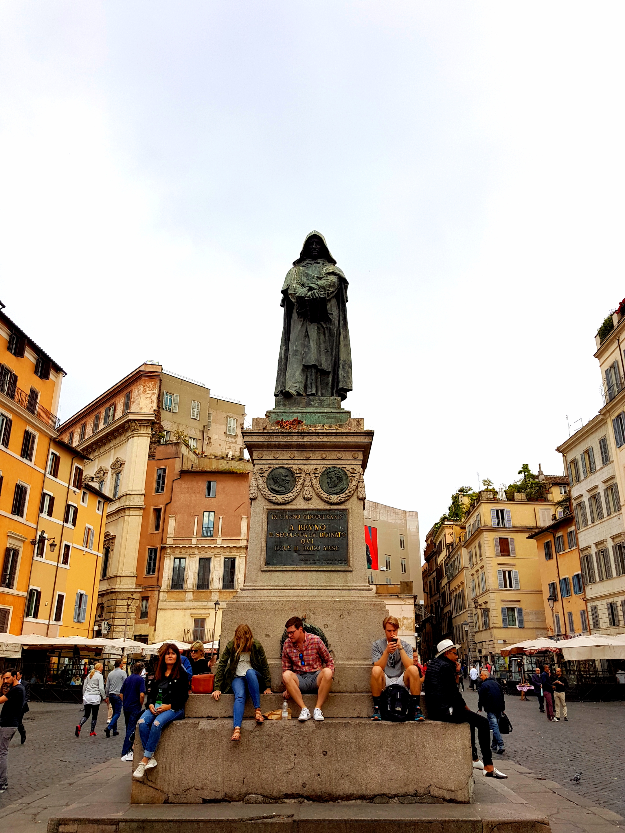 Our last stop of the day was Campo D’Fiori, another square with a slightly sinister statue in the centre dedicated to the philosopher Giordano Bruno. This guy was hung naked upside down before being burnt to death in the square in 1600 for his heretical views! No wonder the statue looks a bit gloomy… other than that it’s a nice square with restaurants and bars lining it and some lovely markets in the day time selling all sorts.