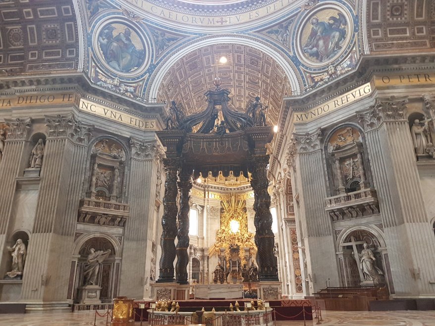 There’s a tomb holding Pope John Paul II, Bernini’s 29m high baldachin, a ceremonial canopy sitting over the papal altar and above this is Michelangelo’s done at 119m high! You can enter the Vatican grottoes from here for free and visit the tomb of St Peter himself for an extra 13E.