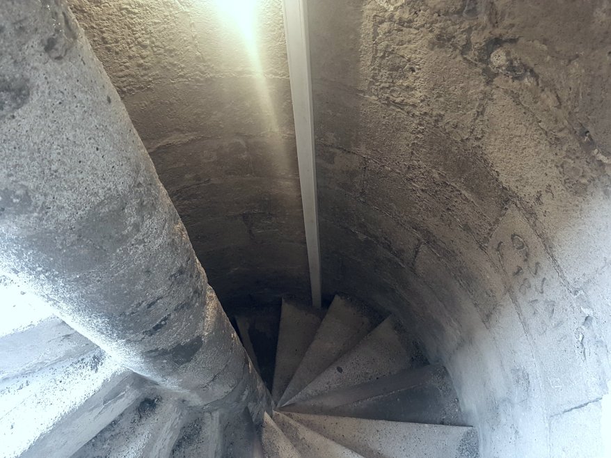 Inside glows with the stained glass windows colourful depictions, and for a donation you can climb up to the top of the cathedral tower. It’s definitely not for the faint hearted, going up the winding spiral staircases, the steps worn away by hundreds of years of use. However, the views once you get to the top are amazing. You get a 360° look at Beziers and the surrounding countryside.