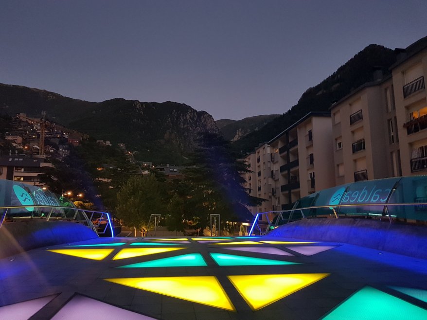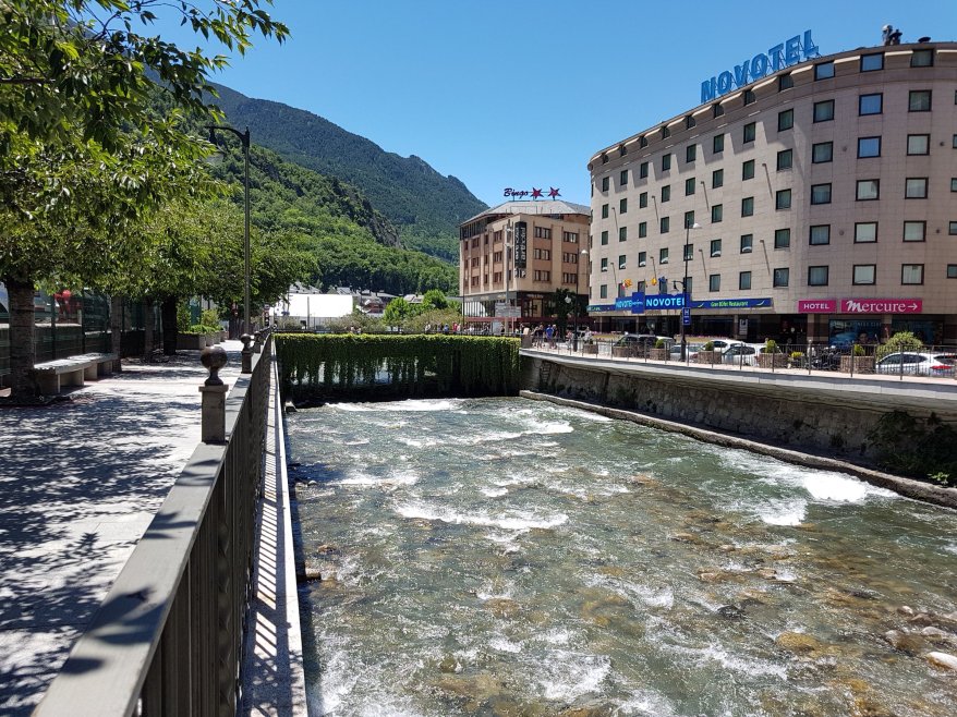 There’s a fast flowing river running right through the centre and I followed this up towards my hotel, passing the impressively futuristic spa Caldea.