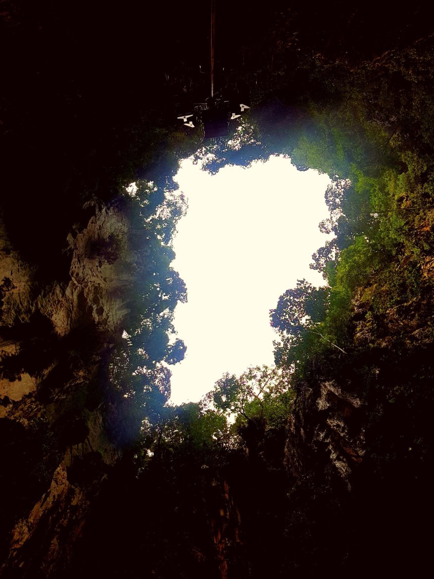 Inside the caves it was a bit cooler, and the size was impressive, reaching up above us. We wandered through before finding ourselves in daylight once again. The cave had no roof and sunlight poured through the natural skylight.