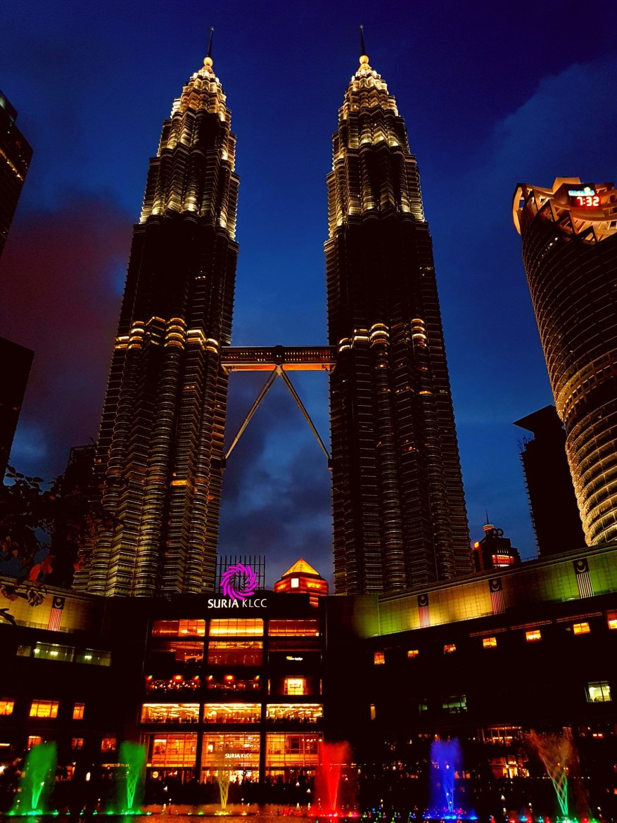 The sun was setting as we stepped out into KLCC park and we wandered around the little lake, finding a spot to sit and marvel as the City transformed around us as night fell. The view of the towers at night is amazing and after being the subject of a few locals pictures and live streams the light show on the lake began.