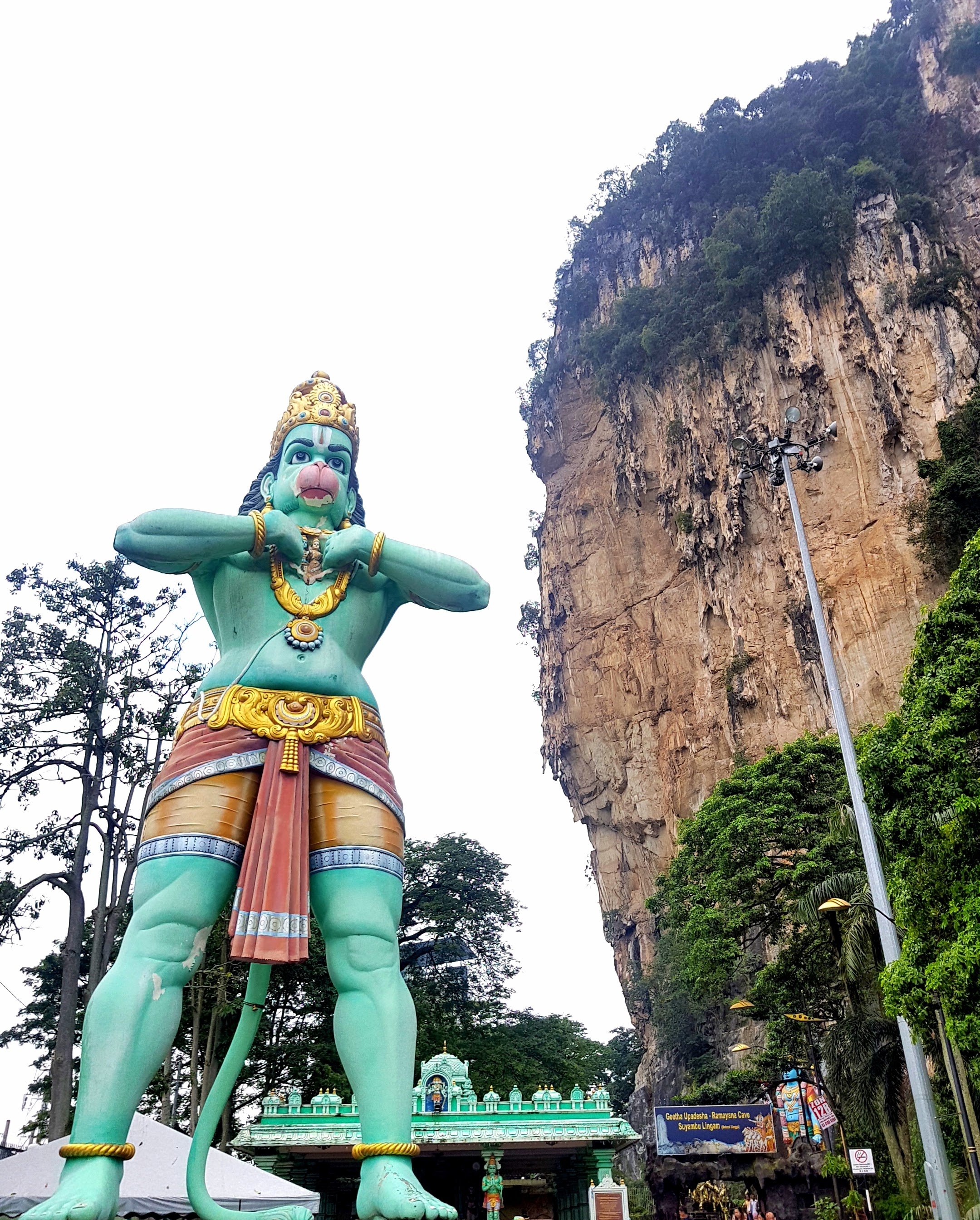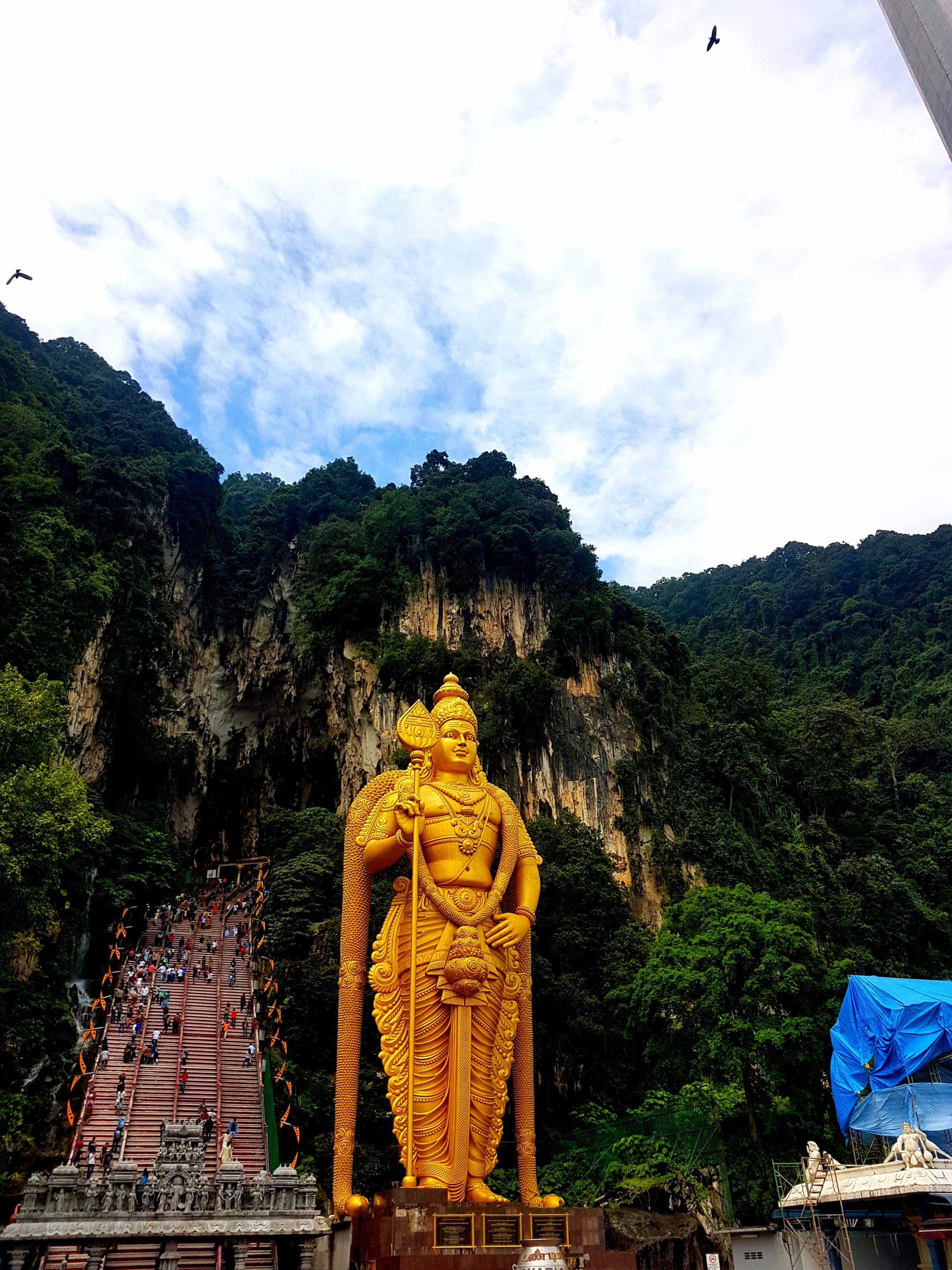 Taking my trusted lonely planet guide to the City we planned our day. It was around midday at this point and we decided to head out of the City for the Batu caves, one of KL’s major sights. We took the monorail back to the station and got on one of the many trains out of the City to Batu. Beginning in 1890 the caves have been a major Hindu centre of worship. They are famous for the 140ft statue of the Hindu God of war, Lord Murugan.