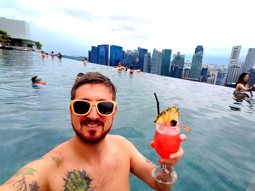 After looking out at the stunning scenery in front of us, we found a spot and jumped straight into the pool. Swimming up to the edge we marveled at the amazing cityscape in front of us. I had to get a Singapore Sling again, but it didn’t measure up to Raffles at all unfortunately! After spending a couple of hours relaxing by the pool we decided to go explore more.