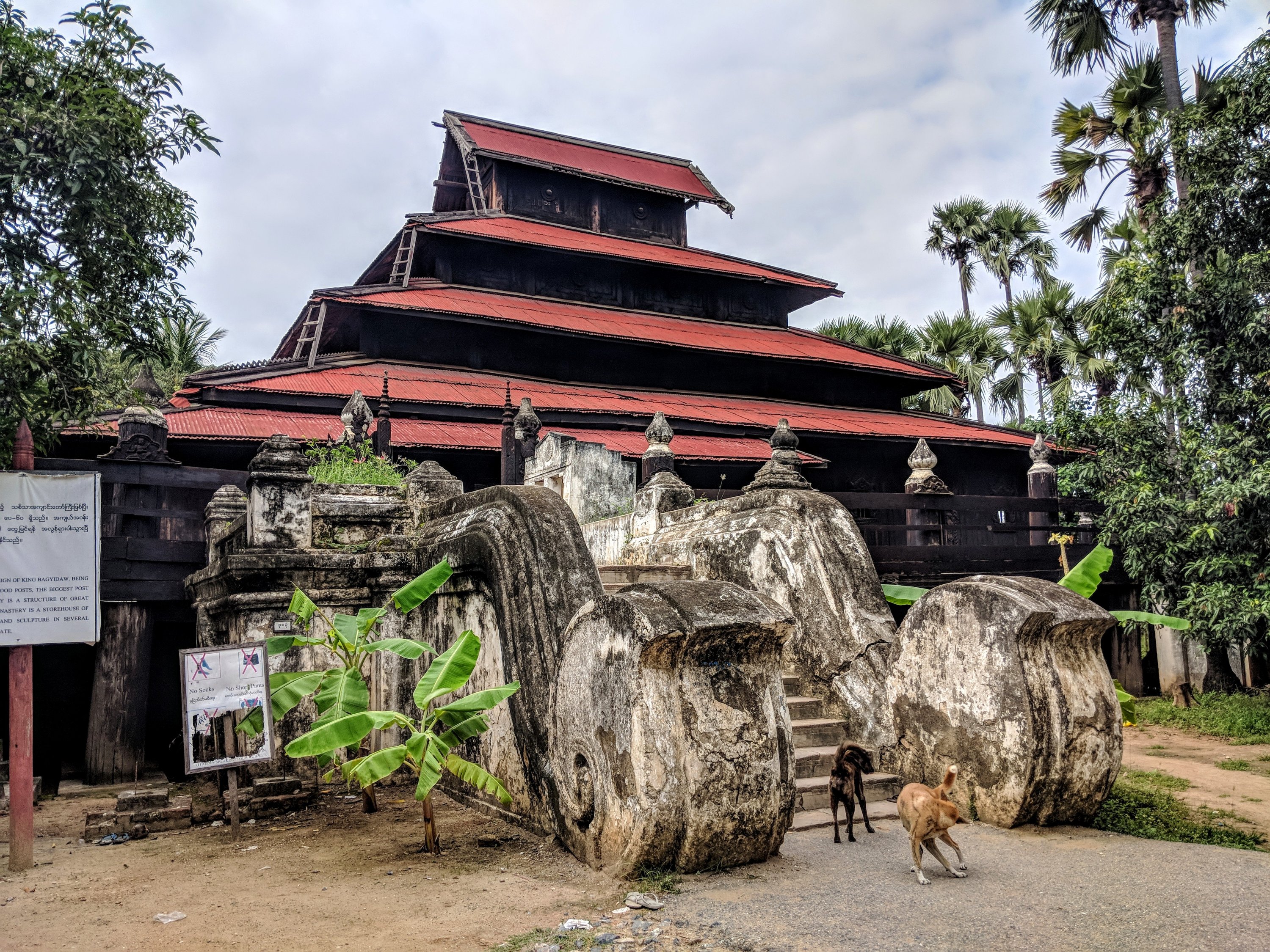 Our last stop in the Southern area of Mandalay was an old wooden monastery. I believe it’s used to teach children, but I couldn’t see anyone around, just a few squirrels and some dogs guarding the steps up, so I didn’t dare to climb them.