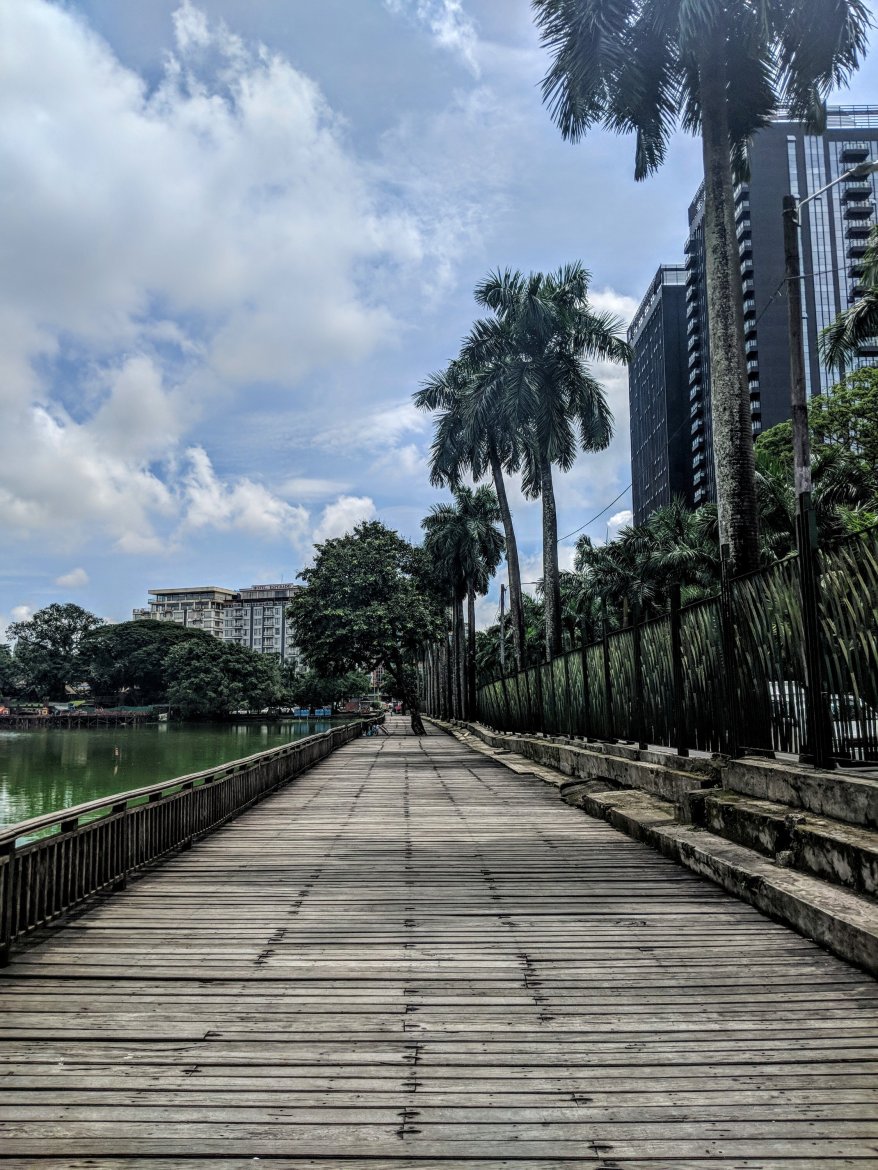 Feeling hungry, I found a place selling these super tasty pancakes covered in sugar l, and continued my walk, not really knowing where I was headed. I passed the train station which I was going to get to later, then realised I was near a big park and lake called Bogyoke. As it was recommended in my lonely planet guide I thought I’d have a wander around it.