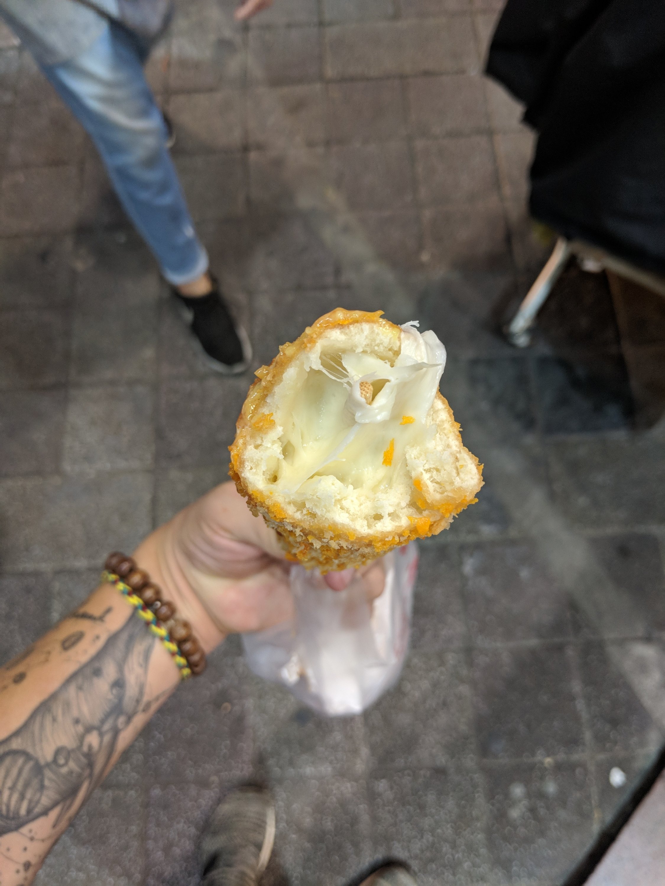 Once I got there I was like a kid in a sweet shop. There was so much to choose from even trying to be vegetarian, there was definitely enough to try! I had one dish in mind and I was so excited when I found it! Stinky tofu is made from fermenting the tofu in a mix of fermented milk and vegetable brine, it’s then deep fried and served with chilli and soy sauce and pickled vegetables. It was absolutely delicious, but it really did stink too!