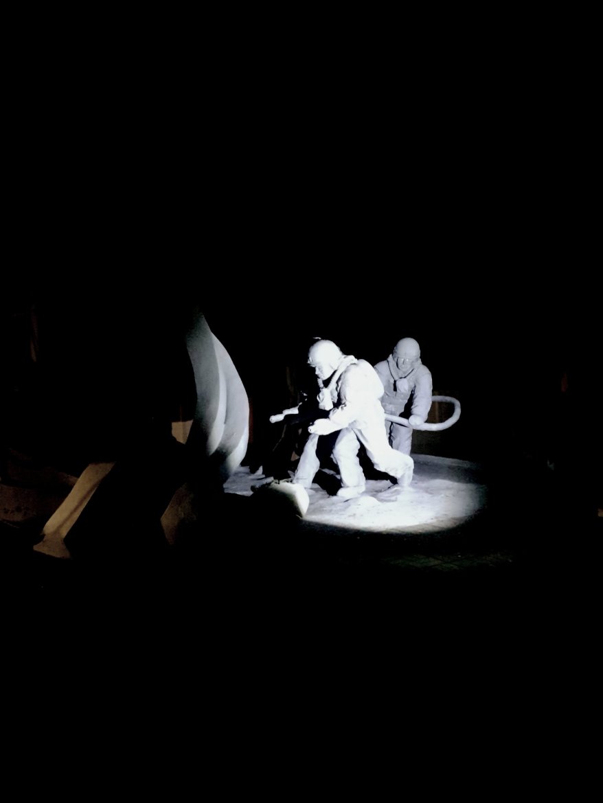 It was starting to get dark now as dusk fell, and our second to last stop was the police station which was definitely like something out of a horror film with it’s abandoned cells. Our last stop was on our way out and had to be illuminated by the bus….it was the memorial to ‘Those who saved the world’ the firefighters that died putting out the fire at the nuclear power plant and the people who cleaned up the area after the accident. It was a fitting way to end the trip, but the drama had just begun.