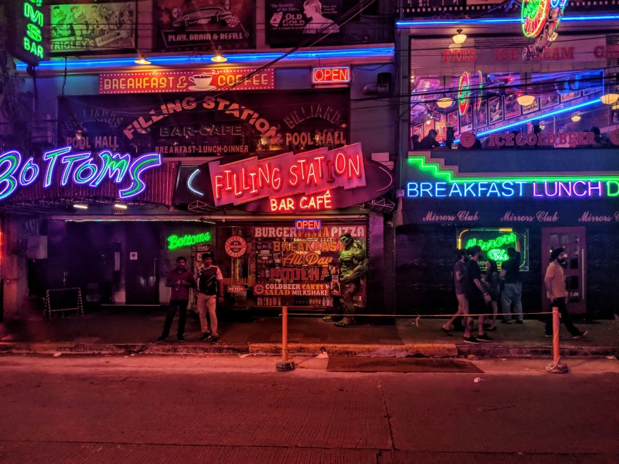 The girls had noticed another street nearby full of bars, so off we trotted in search of more drinks. P. Burgos street was a complete contrast to where we had been, big bold brash and full of expats, I think the best way to explain it is by the first thing I was offered by a young man on the street….viagra. Not letting it deter us we stopped at one of the many bars along here sat down, ordered some beers and people watched.