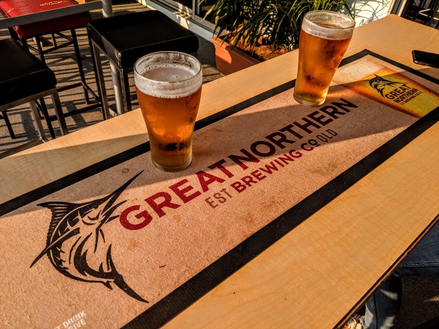 Tonight we had a drink at the Coolangatta Hotel, watching the lorikeets come in to nest for the night. Then we walked over to have what is probably the worst pizza of my life. I always thought pizza was something you couldn’t get wrong, but Earth and Sea pizza restaurant managed it.