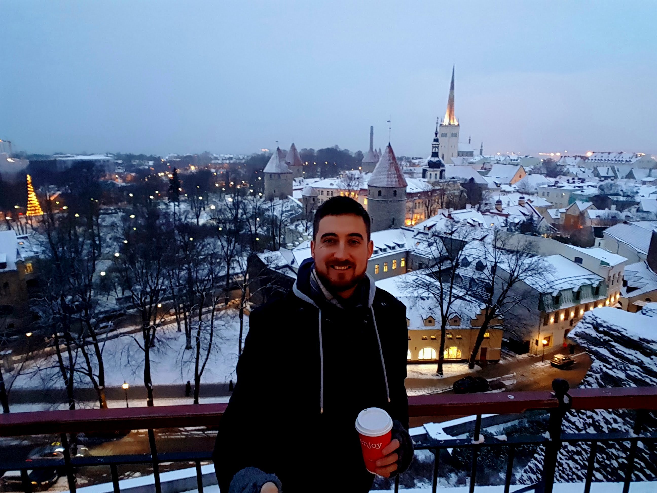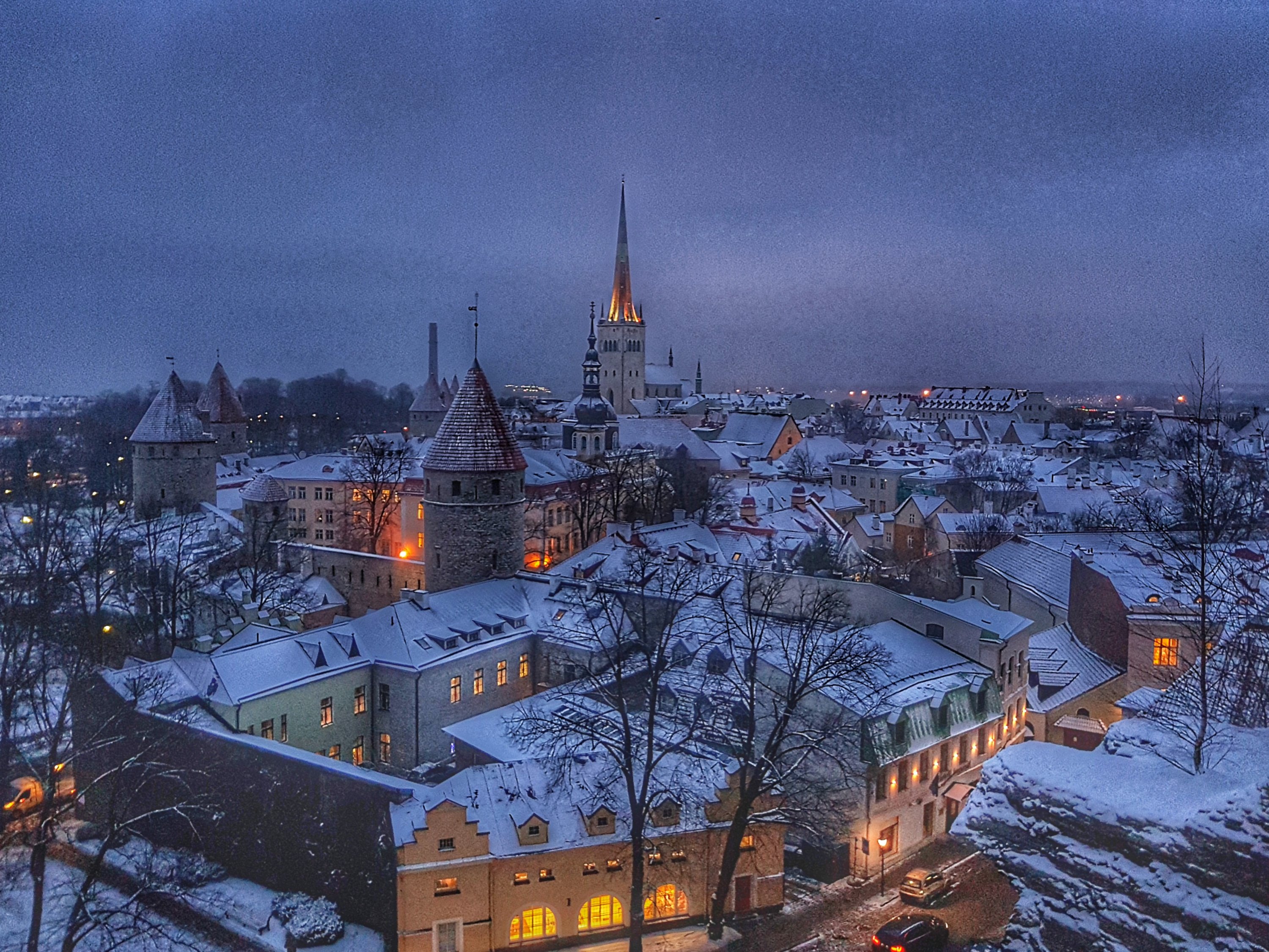 There are some gorgeous buildings here, but the main event for me was thge Kohtuotsa viewing platform. This looks out over the whole of the old town, and as night fell twinkling lights began to appear in front of us and it began to snow. It was an amazing spectacle to witness.